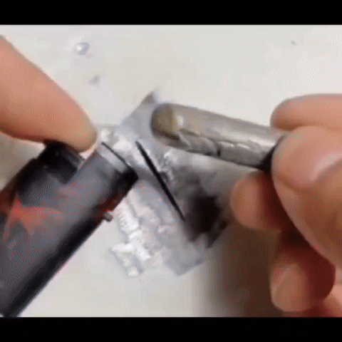 라이터를 통해 가열해주시고 용접부위에 가볍게 문질러주세요