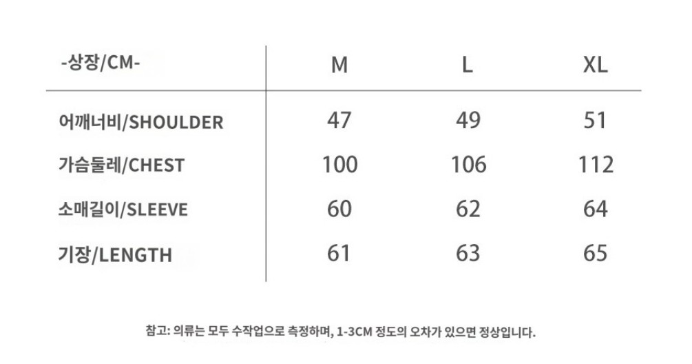사이즈는 아래 표를 참고해주세요