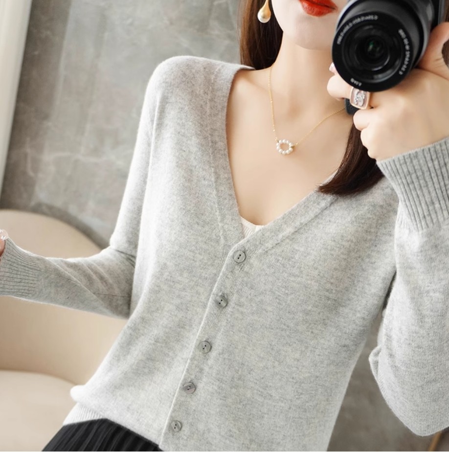 봄코디 브이넥 가디건 봄 스웨터 여성니트 : 세상의모든만물