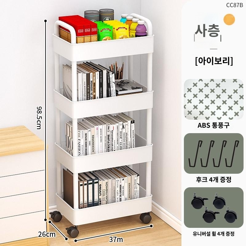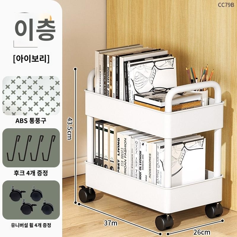이동식 책선반 다층 스토리지 북선반 책꽂이 정리 트롤리 : 세상의모든만물