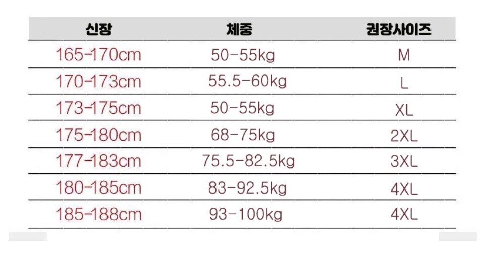 (185-188cm 신장은 5XL 사이즈 입니다)