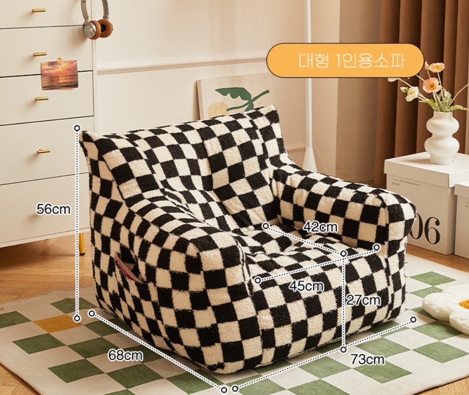 상큼하고 발랄한 느낌의 1인용 빈백쇼파 입니다. 부드러운 캐시미어원단을 느끼실 수 있습니다
