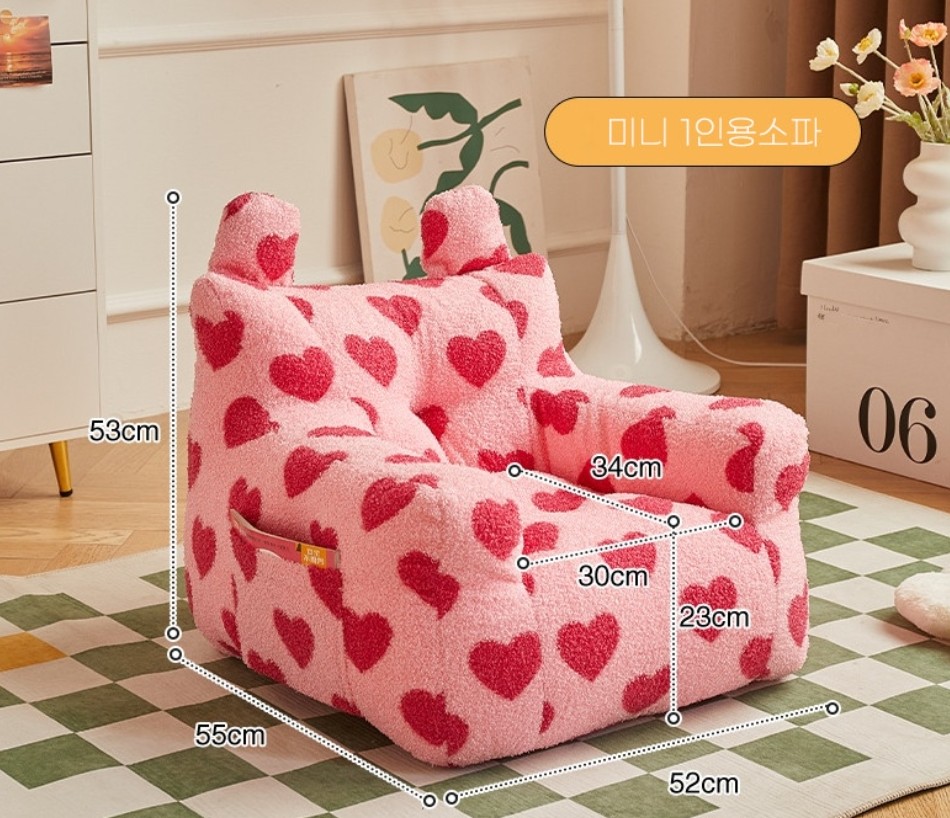미니소파 1인용 빈백 원룸 하트 귀여운 1인쇼파 : 세상의모든만물