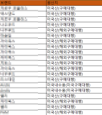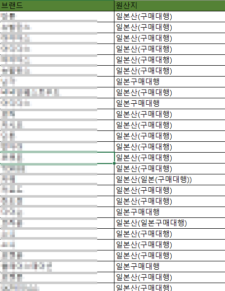 구매대행 국가의 기준값은 원산지 정보에 따라서 구분하였습니다