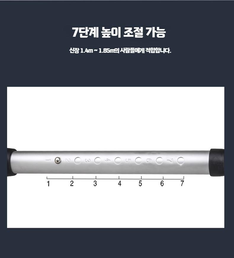 7단계 높이조절이 가능함으로 185cm의 신장까지 가능합니다