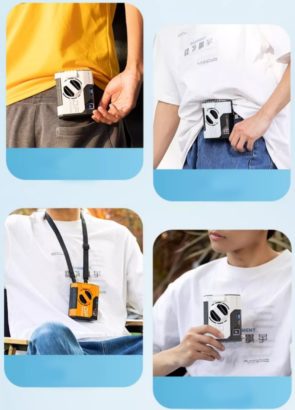 강력한 파워와 유니크한 스타일의 허리걸이 선풍기 입니다