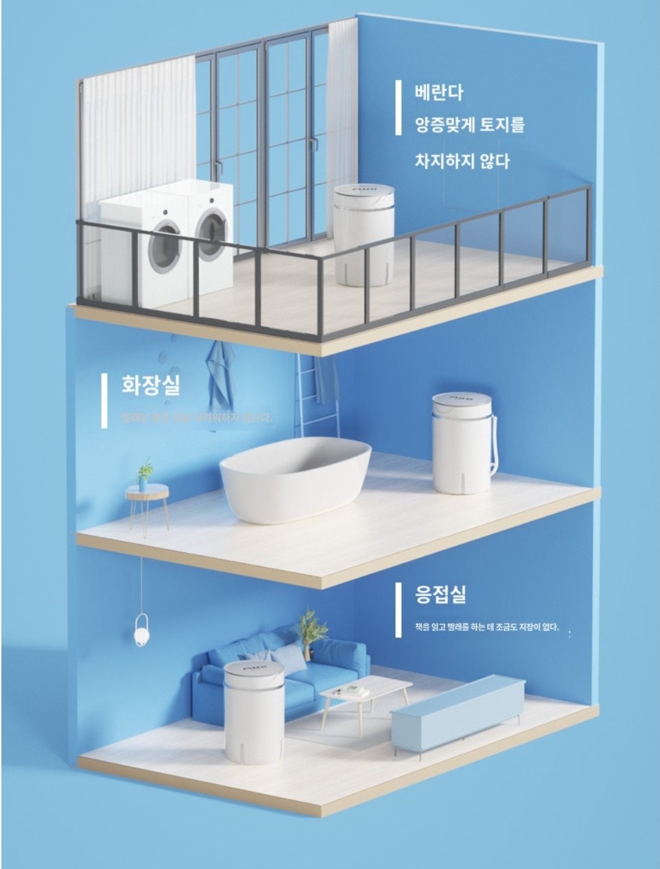 분리해서 세탁해야 하는 세탁물들은 미니 세탁기로 수시로 세탁해주세요