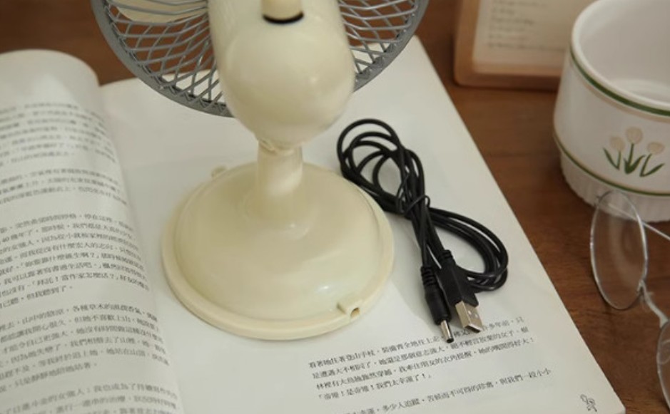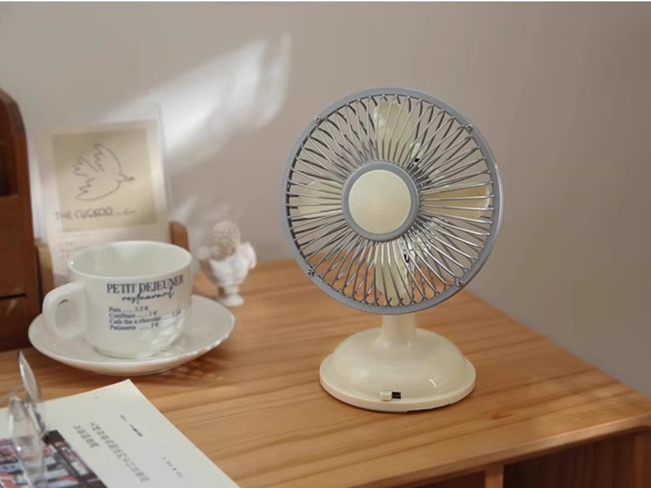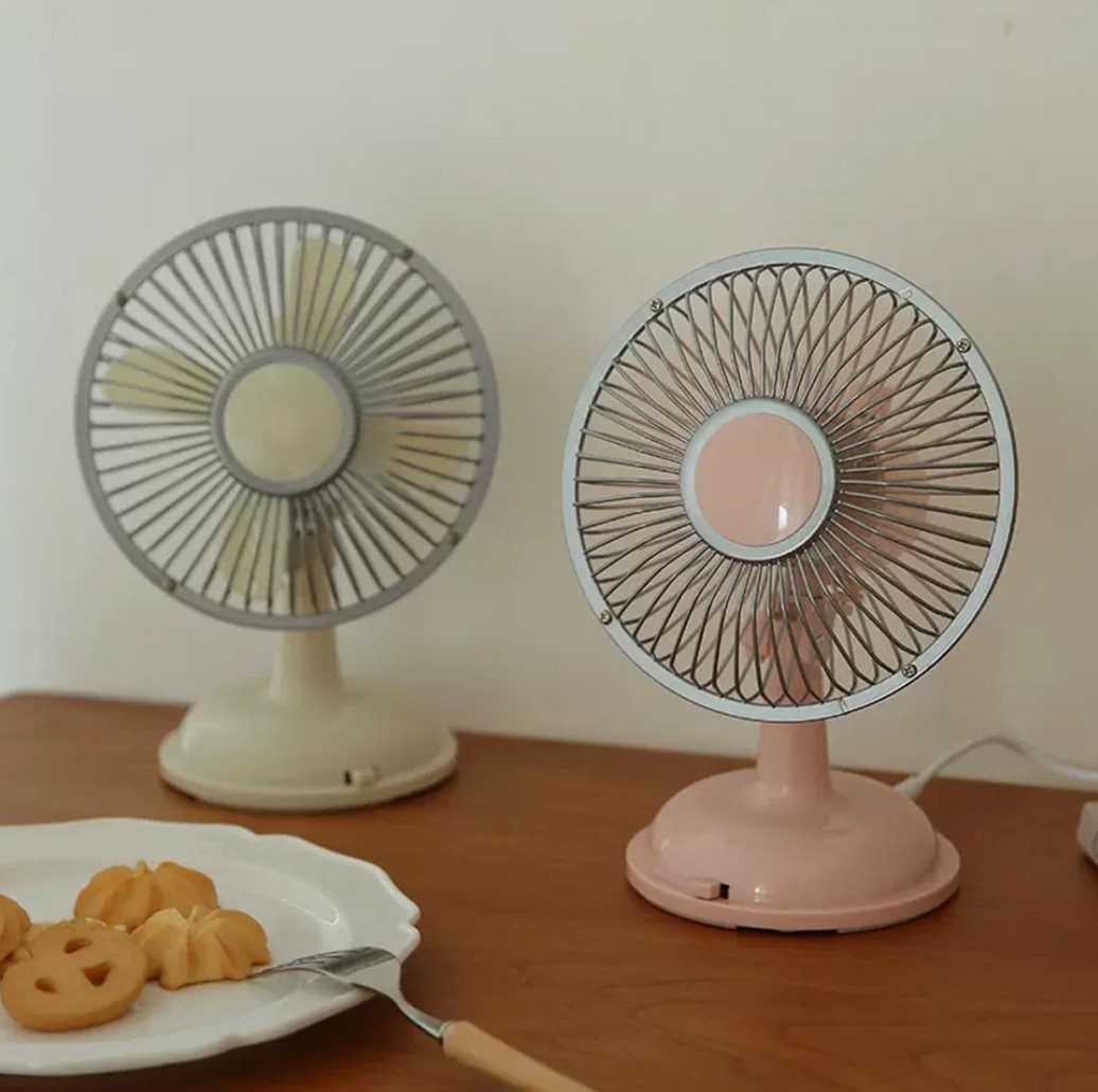 빈티지 느낌의 컬러와 스타일을 갖춘 미니 소형 선풍입니다