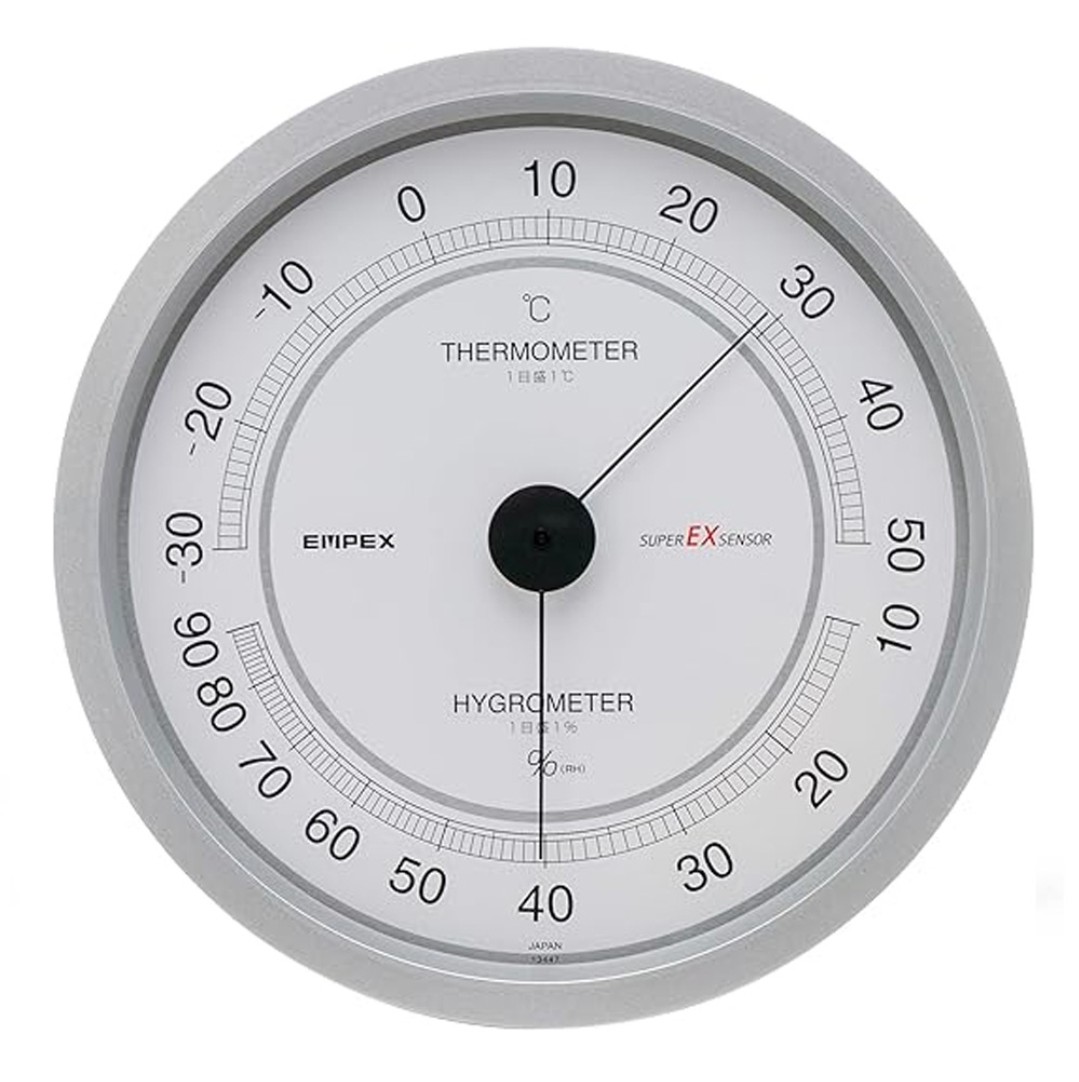 엠펙스 기상계 온도계 벽걸이 온습도계 일제 샤인실버 EX2747 : 더필잡화점