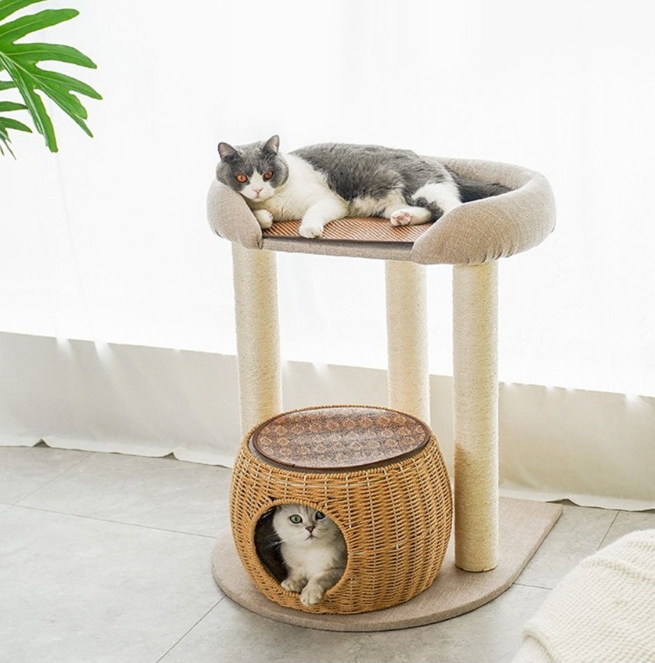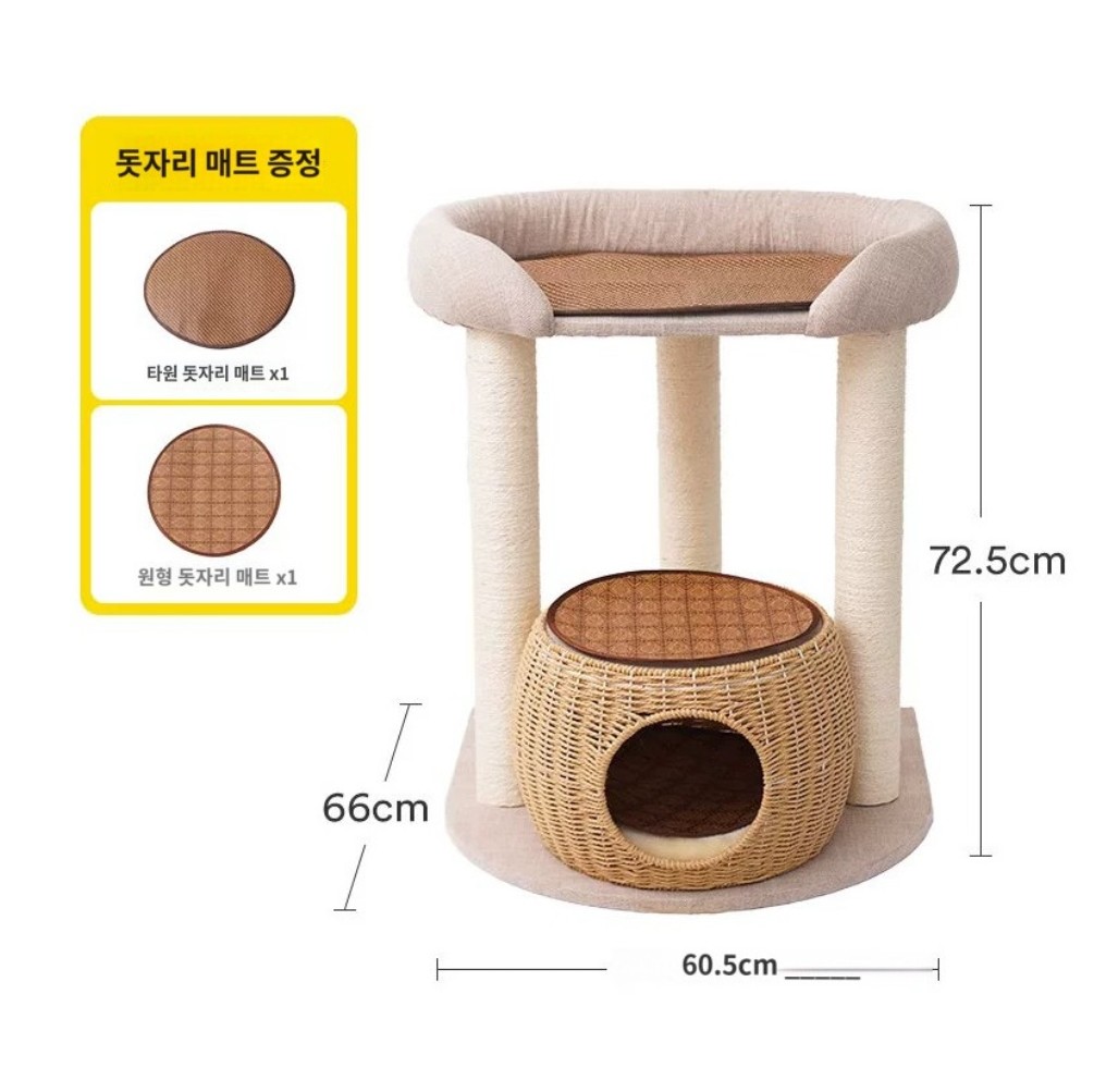사계절용 매트도 함께 제공해 고양이들이 언제든지 편하게 휴식할 수 있어요. 숨숨집 기능도 있어 고양이들이 숨바꼭질 놀이를 즐길 수 있습니다