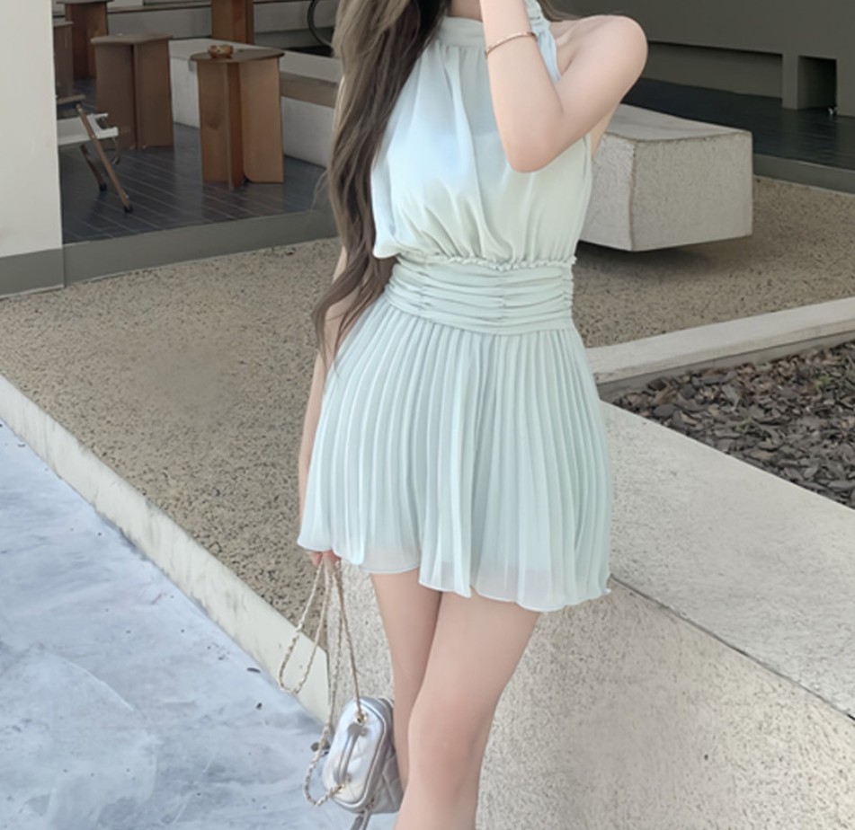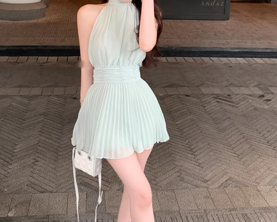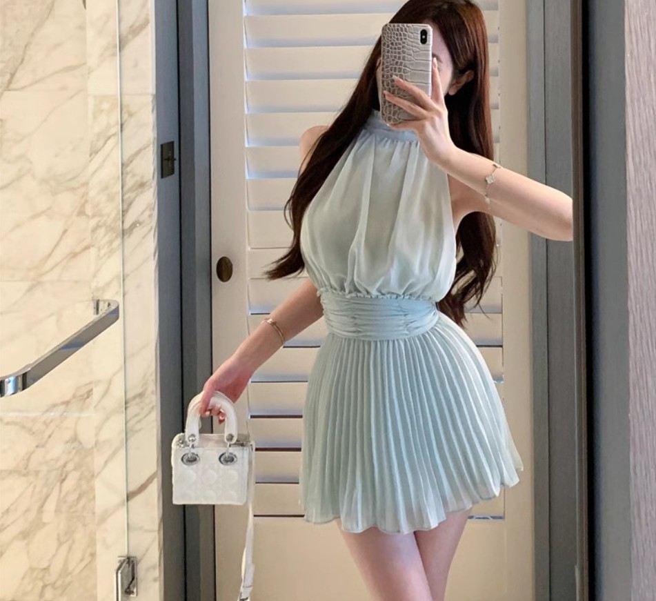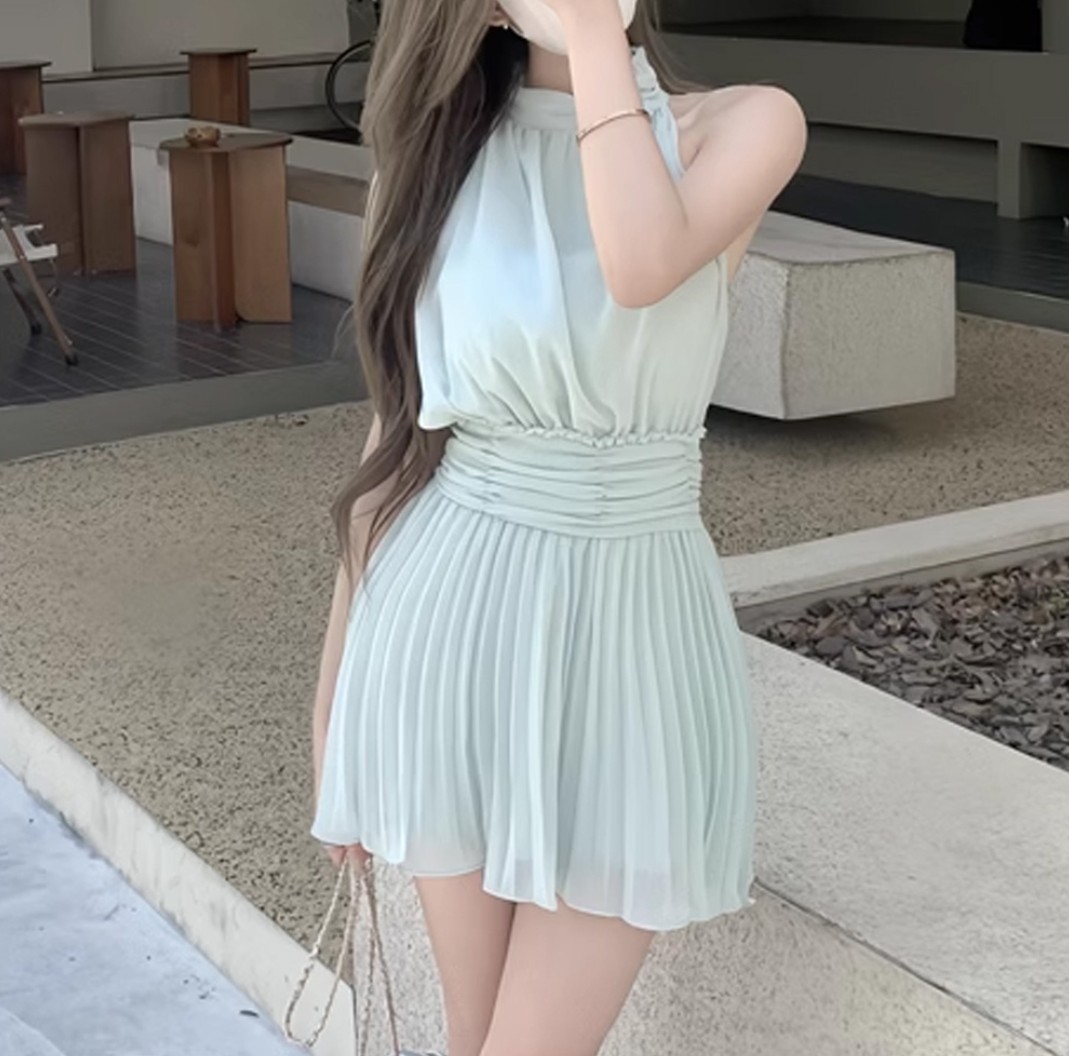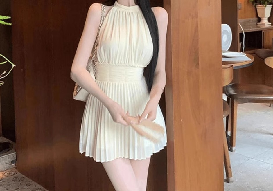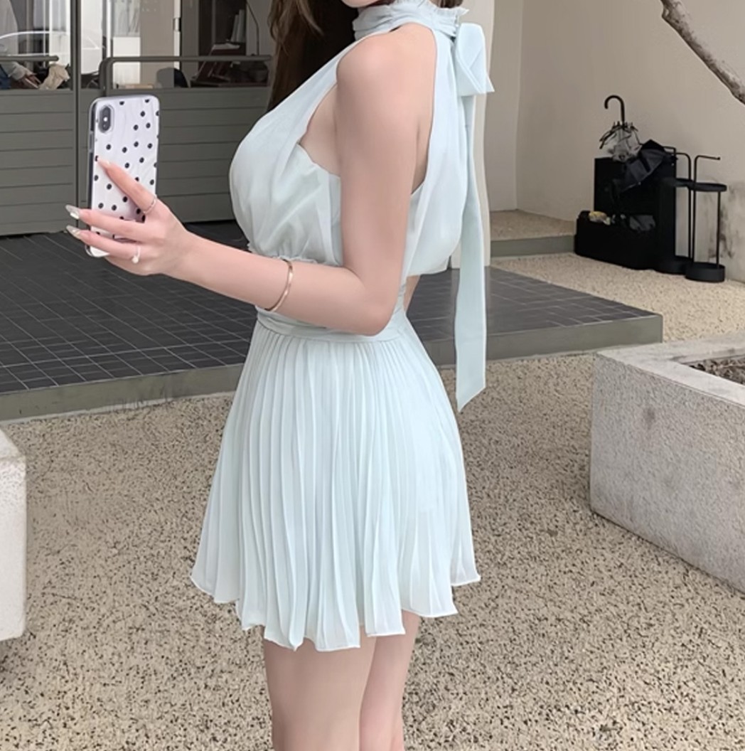 오늘은 시폰 섹시 미니원피스 홀터넥 민소매 플리츠 파티원피스를 소개합니다