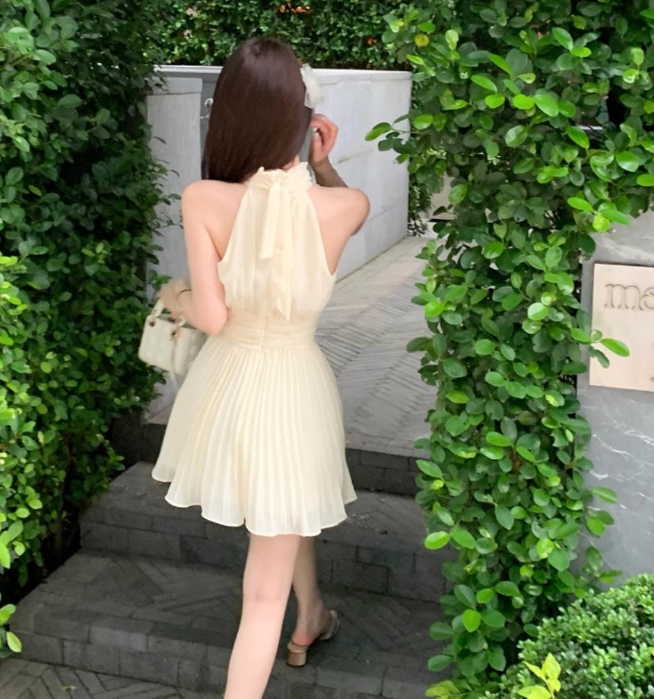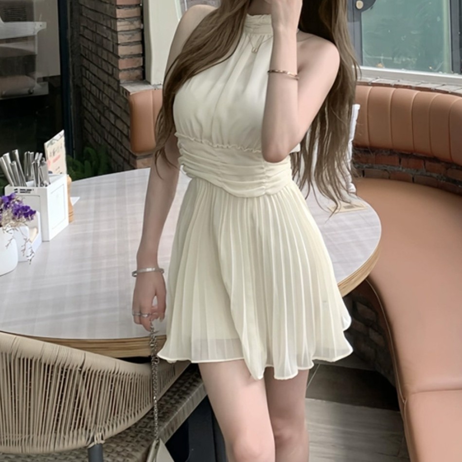 민소매 플리츠 파티원피스 홀터넥 미니원피스 섹시 시폰 : 더필잡화점