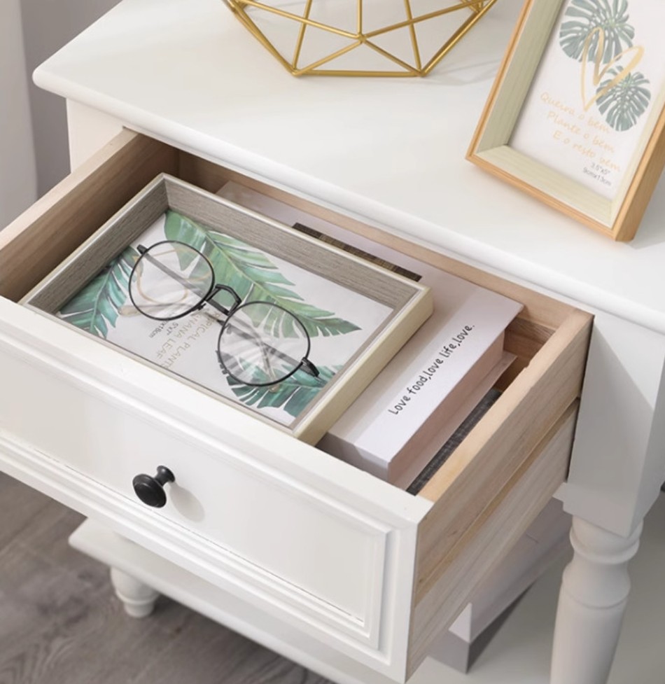 이 협탁은 단순한 침대 협탁을 넘어 다기능적으로 사용할 수 있는 2단 서랍장입니다. 원목 슬라이드 구조로 안정감 있고 부드럽게 서랍을 여닫을 수 있으며, 서랍 방지 버클이 있어 서랍이 쉽게 빠지지 않아 더욱 안전하게 사용할 수 있습니다