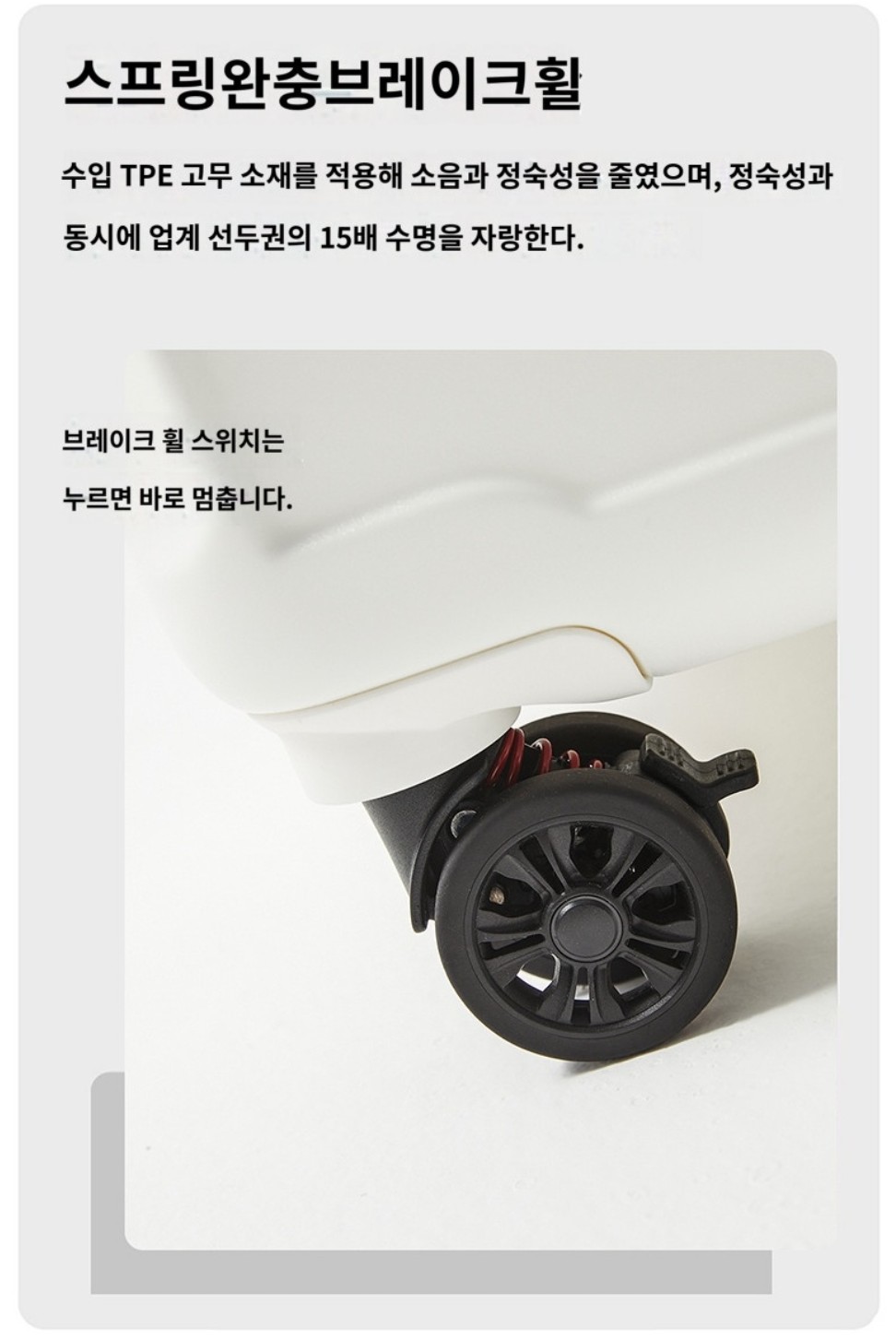 무엇보다 스프링 완충 브레이크 휠을 적용하여 이동 시 발생하는 소음을 줄여주며, 뛰어난 정숙성을 자랑합니다