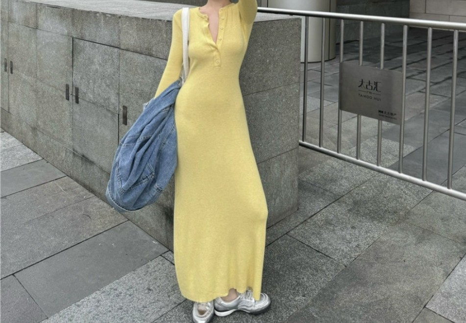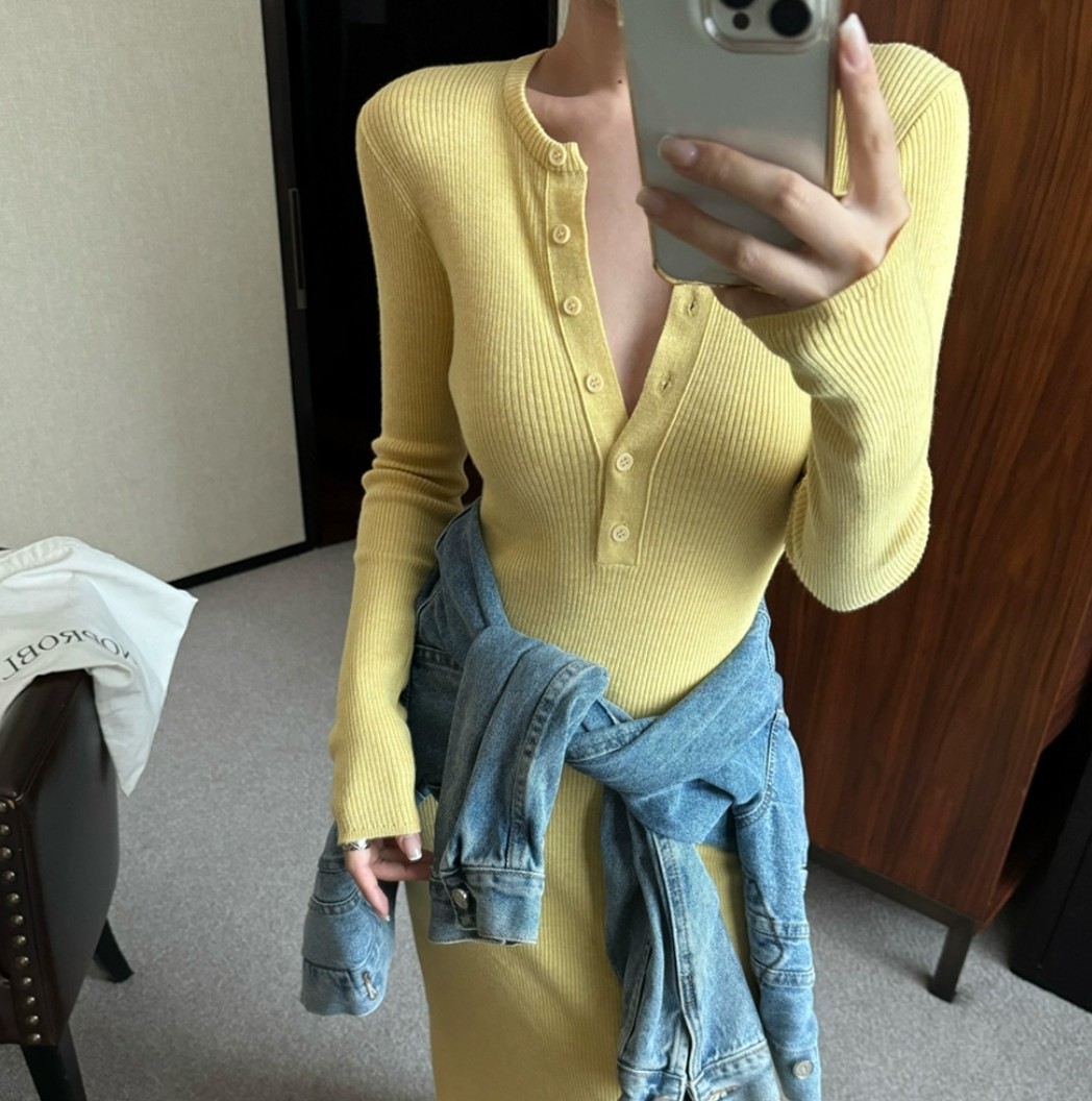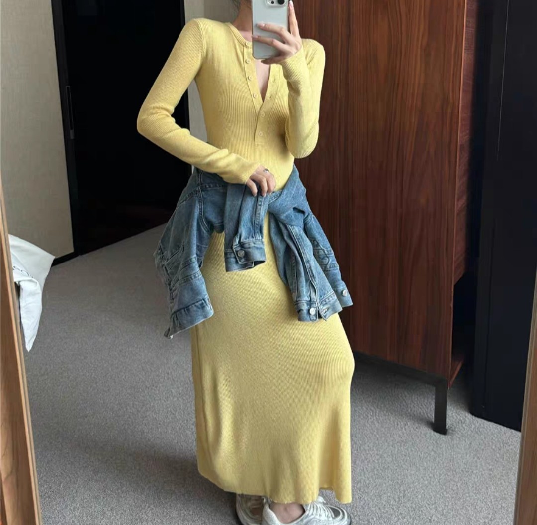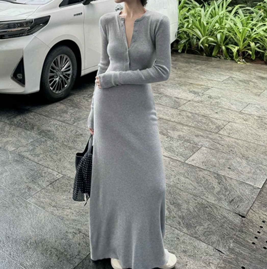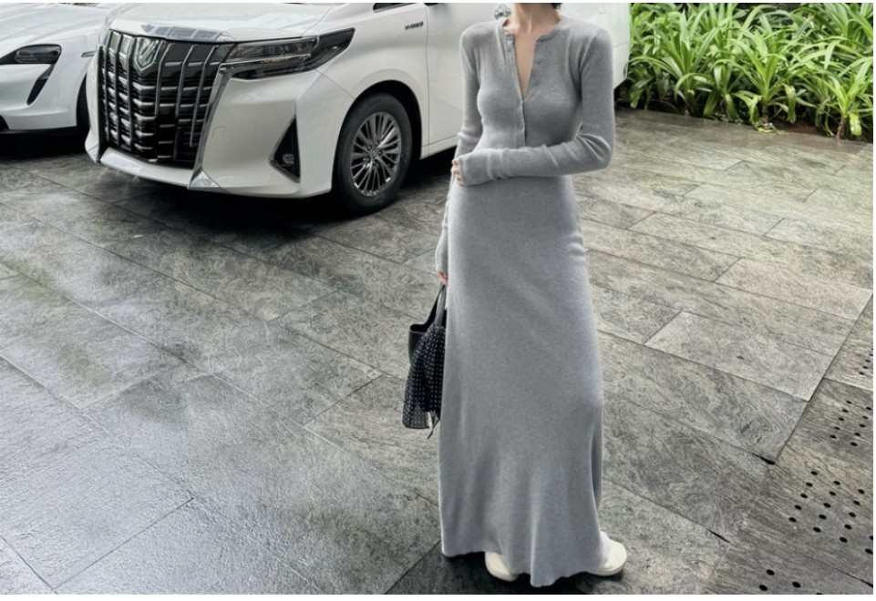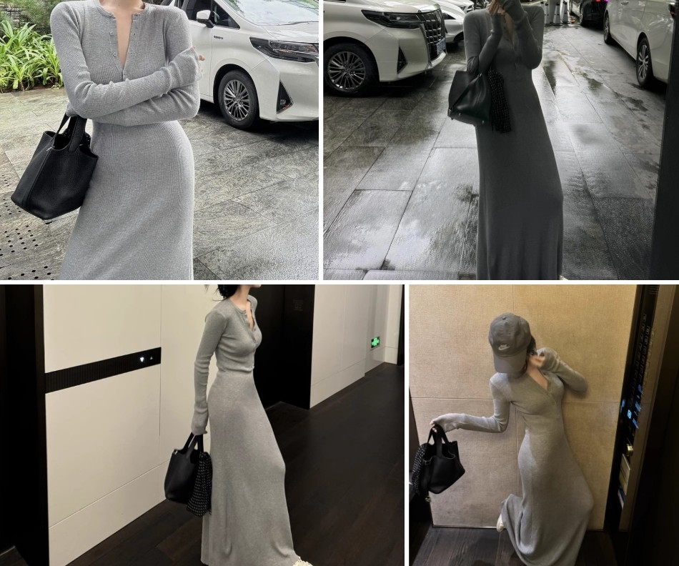 오늘은 휴양지나 여행룩으로 딱 맞는 롱원피스 니트 긴팔 캐주얼 슬림 원피스를 소개해 드리겠습니다