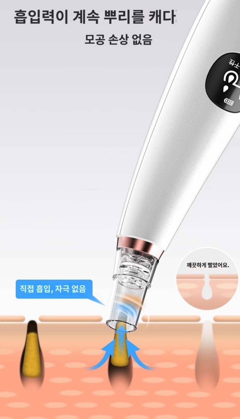 이 제품은 강력한 흡입력을 통해 코와 얼굴의 깊숙한 피지와 노폐물을 깔끔하게 제거해주며, 특히 블랙헤드와 여드름 고민을 덜어주는 데 탁월한 효과를 발휘합니다