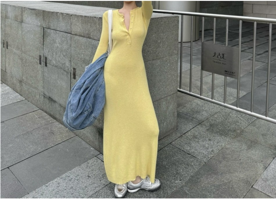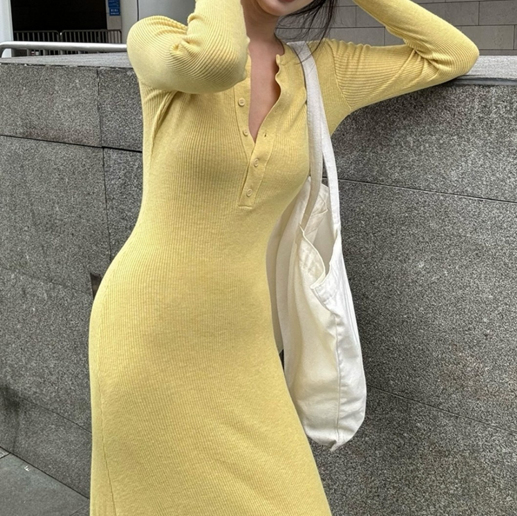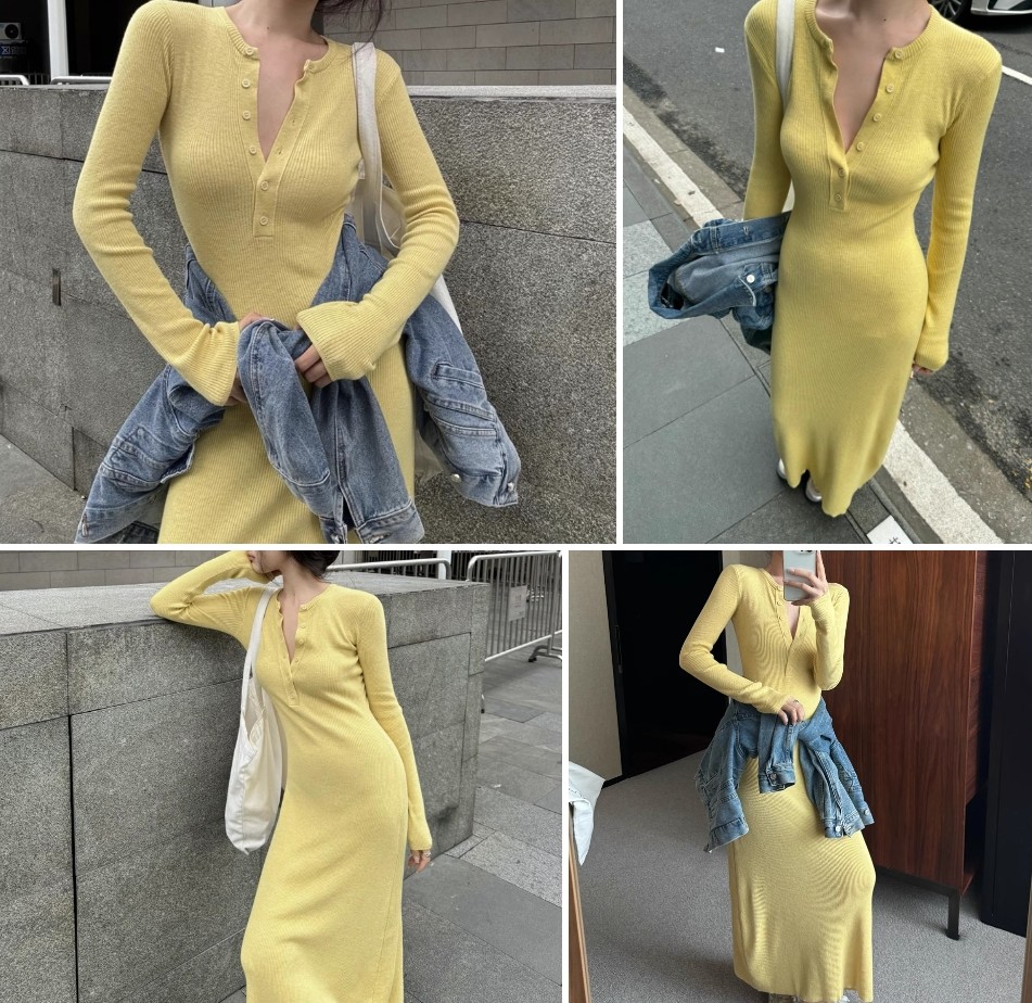 이번에 소개할 제품은 다가오는 여행과 휴양지에서 활용하기 좋은 롱원피스 니트 긴팔 캐주얼 슬림 원피스입니다