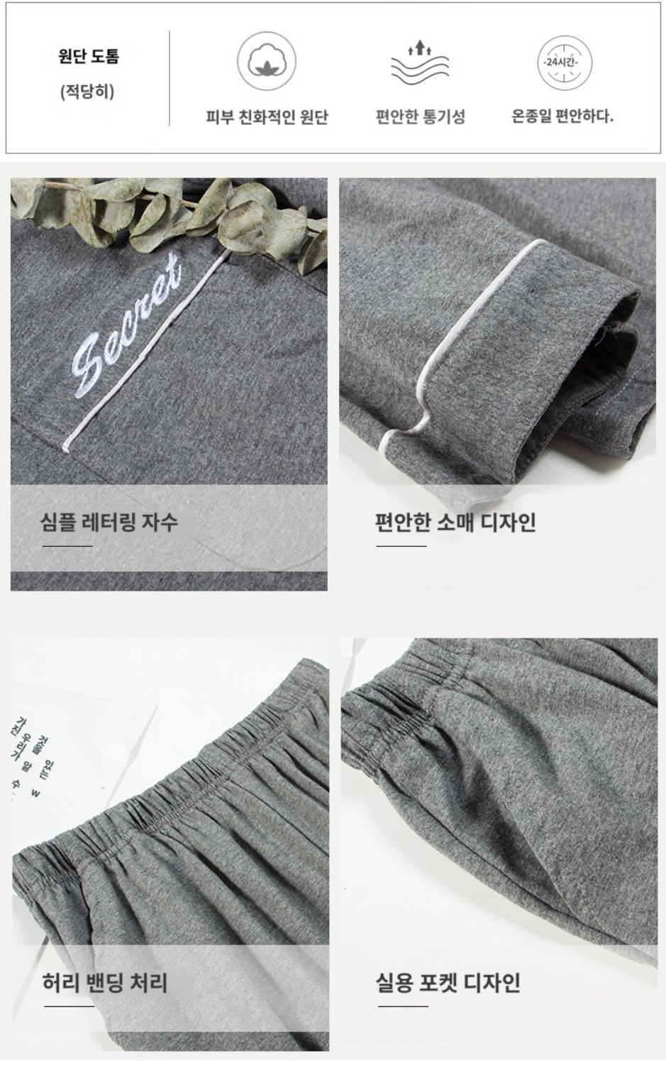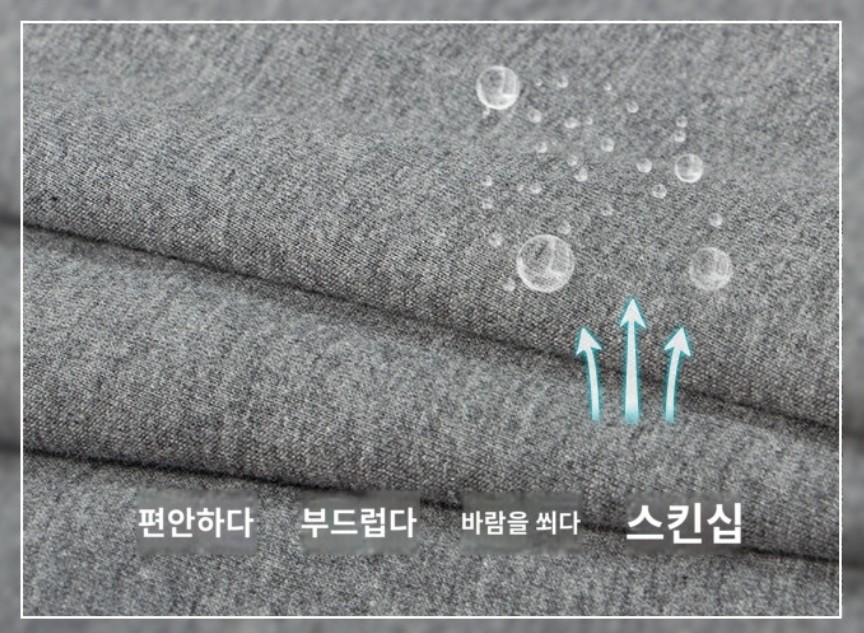 약간 도톰하면서도 통기성이 우수한 원단으로 제작되어 24시간 편안한 착용감을 선사합니다