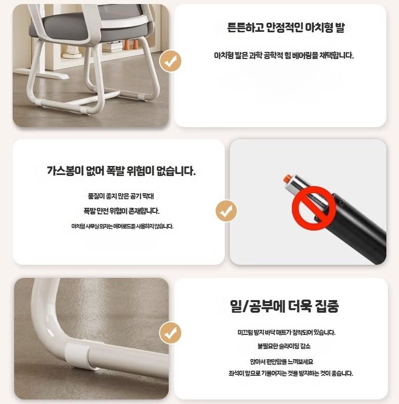 장기간 앉아서 업무 및 공부를 하여도 편안함을 느끼실 수 있고, 공기순환을 통해 시원함을 느끼 실 수 있습니다