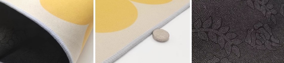 러그의 장점은 그 우아한 마감과 뒷면에 적용된 논슬립 패드입니다.미끄럼 방지 기능이 있어 안전하게 사용할 수 있으며, 청소 또한 매우 간편하여 실용성을 자랑합니다