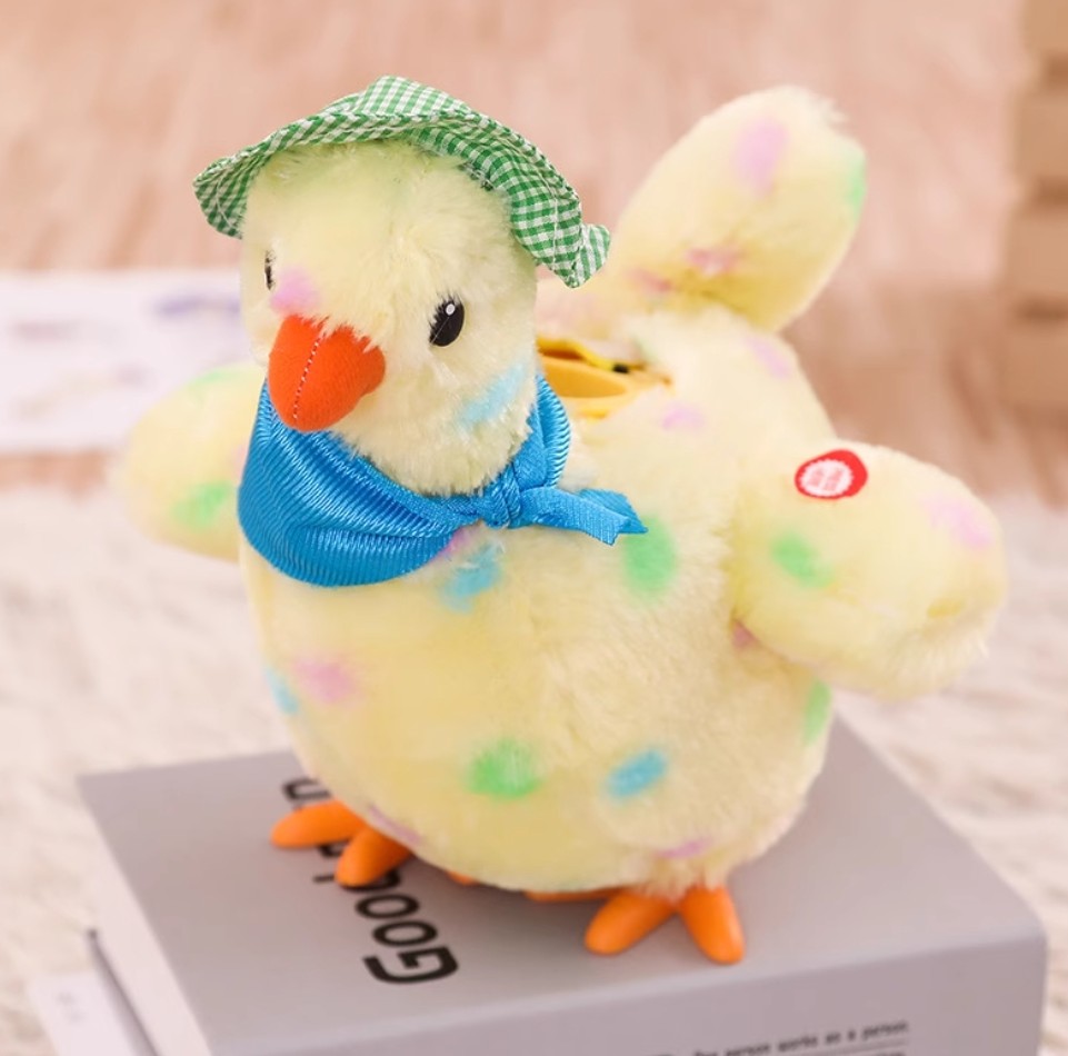 암탉의 날개에 달린 스위치를 누르면 음악이 흘러나오며 몸을 위아래로 춤추는 동작을 시작합니다