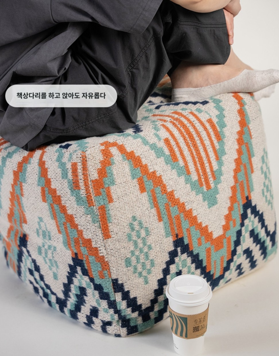 사이즈는 500mm x 500mm x 500mm로 설계되어 책상다리를 하고 앉아도 충분히 여유롭습니다