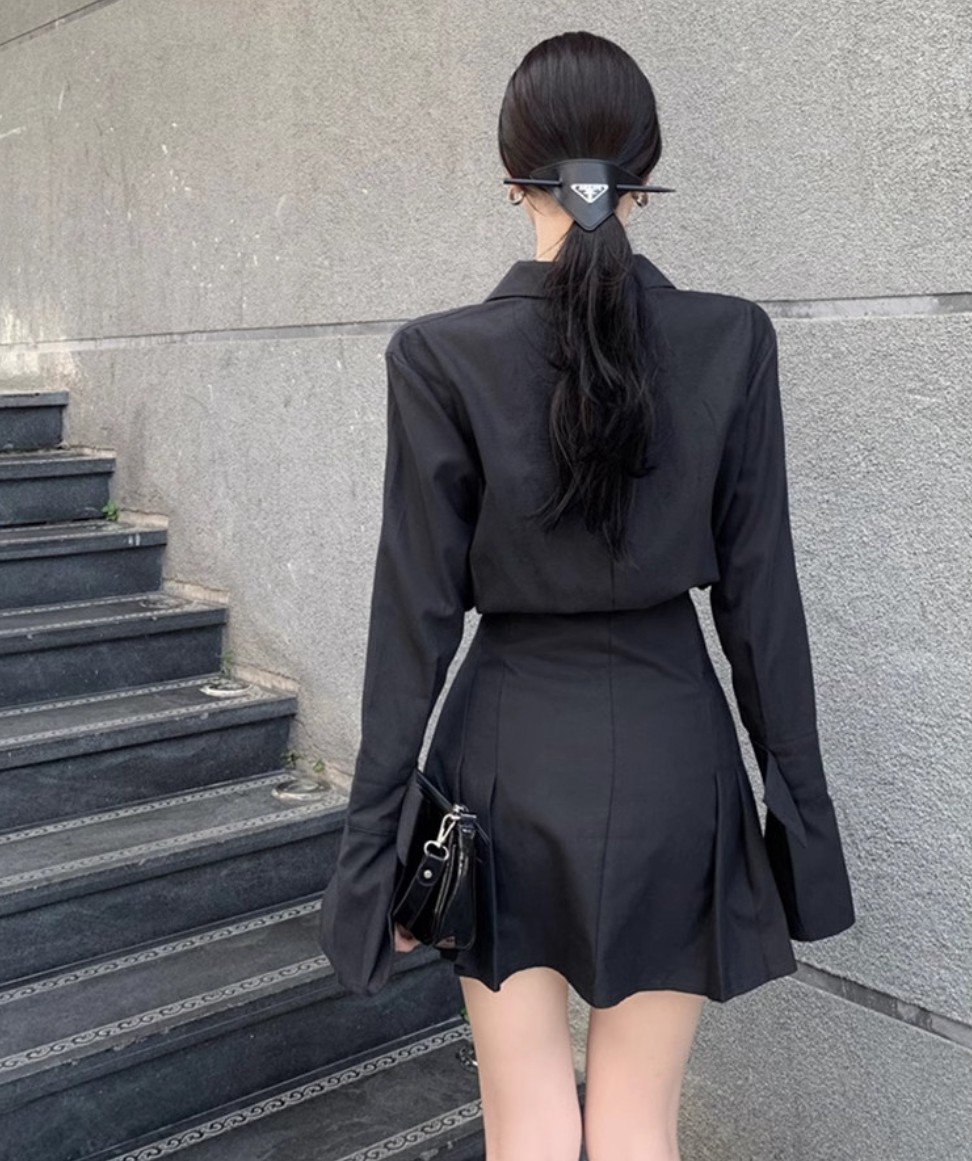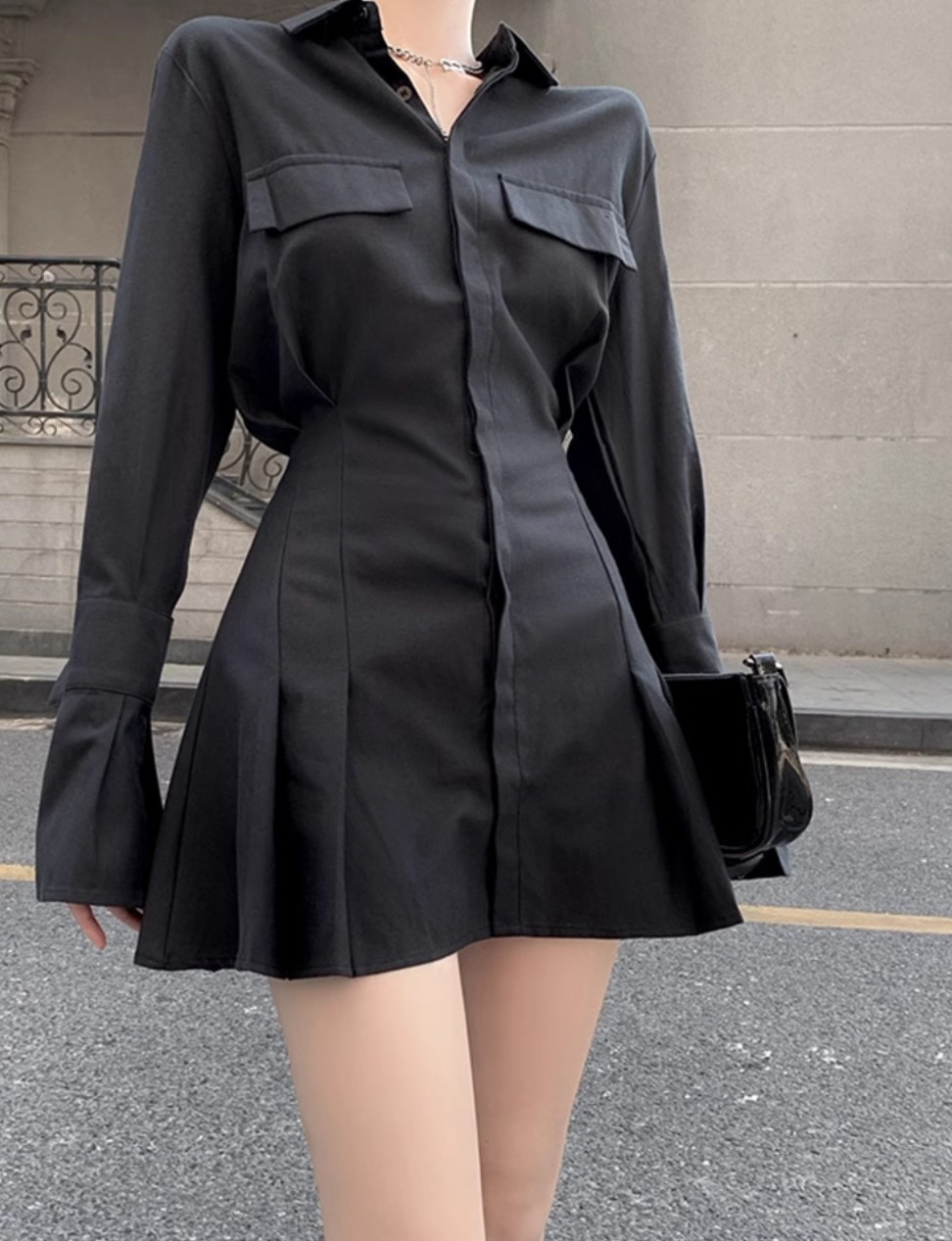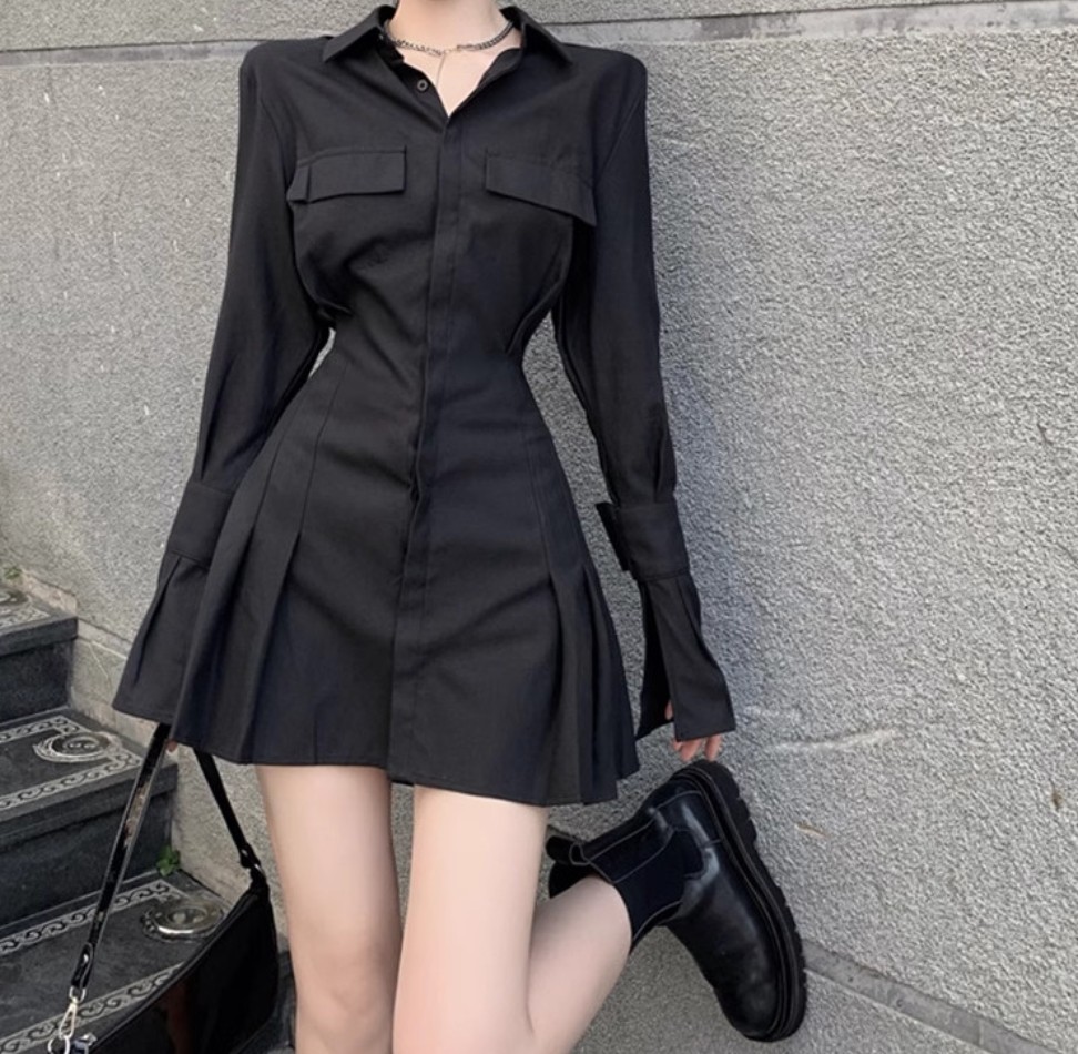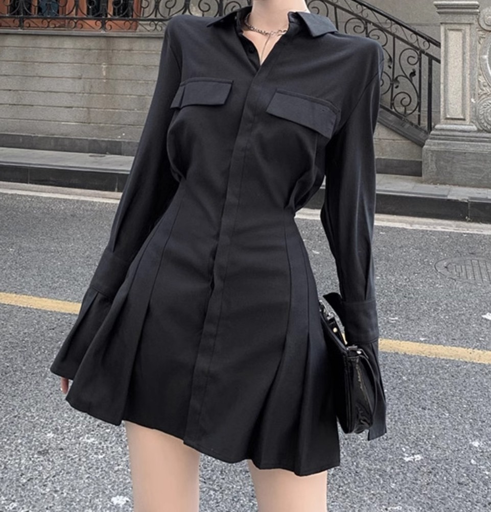 여성 A라인 하이웨이스트 원피스 슬림핏 긴소매 : 세상의모든만물