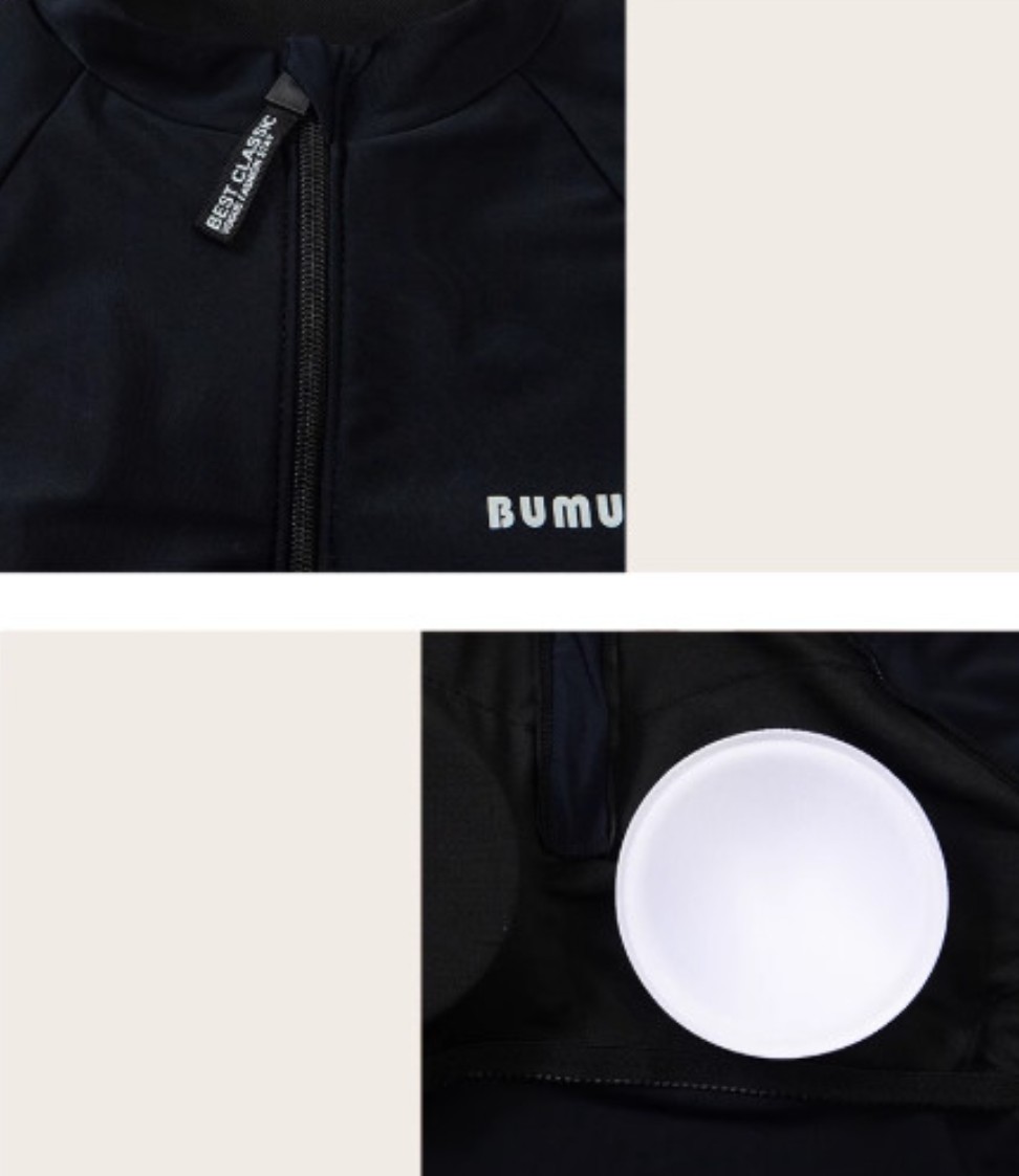 하이넥 지퍼형 디자인: 쉽게 입고 벗을 수 있고, 물놀이 중에도 안정감 있게 착용 가능해요