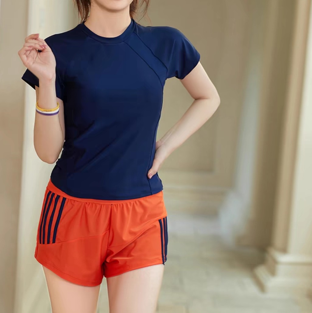 빅사이즈 바디슈트 투피스 래시가드 반팔 반바지 수영복세트 : 더필잡화점