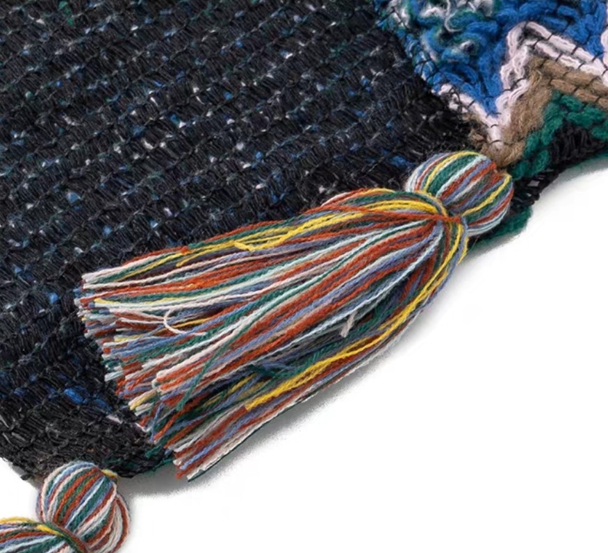 ■밑단에 길게 드리워진 컬러풀 프린지 디테일