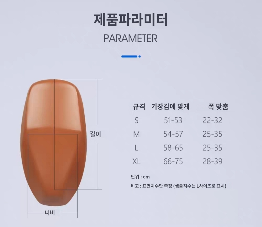 시트 전체가 아니라 윗면 길이와 폭만 체크하세요!