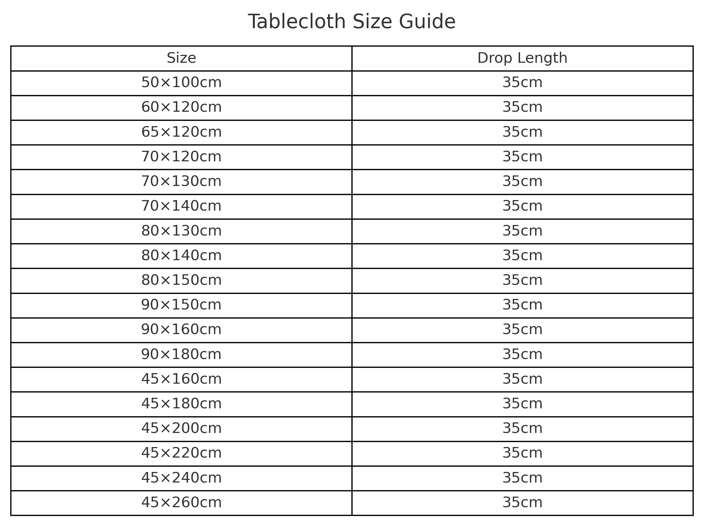 어떤 테이블이든 꼭 맞는 사이즈를 선택하세요!