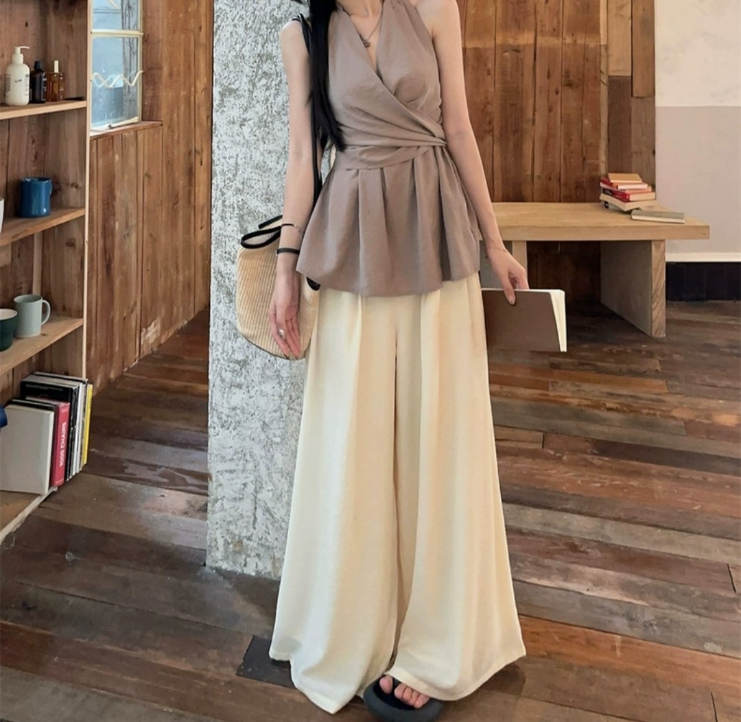 프렌치 꼬임 홀터넥 하이웨스트 와이드 팬츠 : 더필잡화점