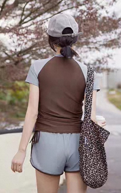 빅사이즈 바디슈트 투피스 래시가드 반팔 반바지 수영복세트 : 더필잡화점