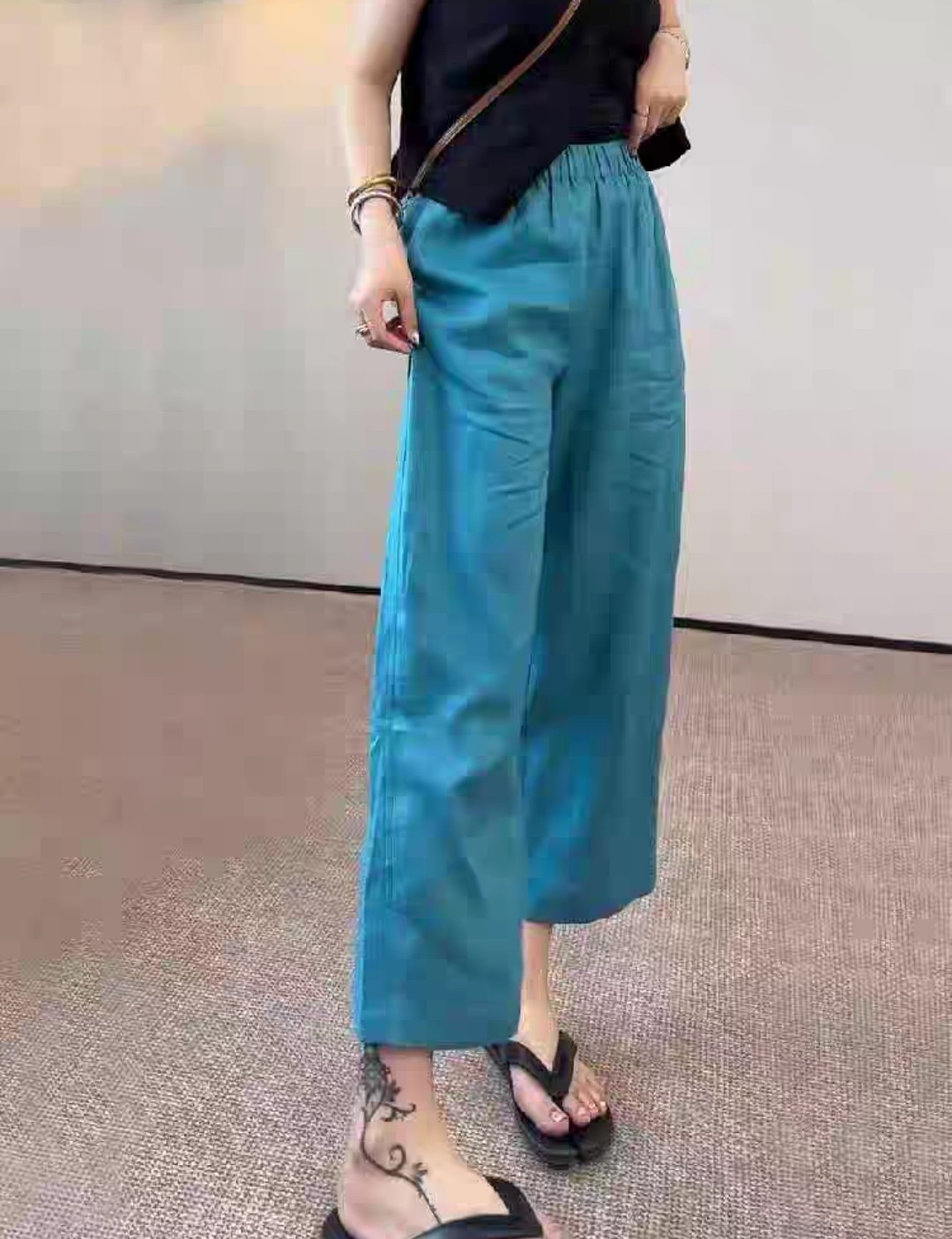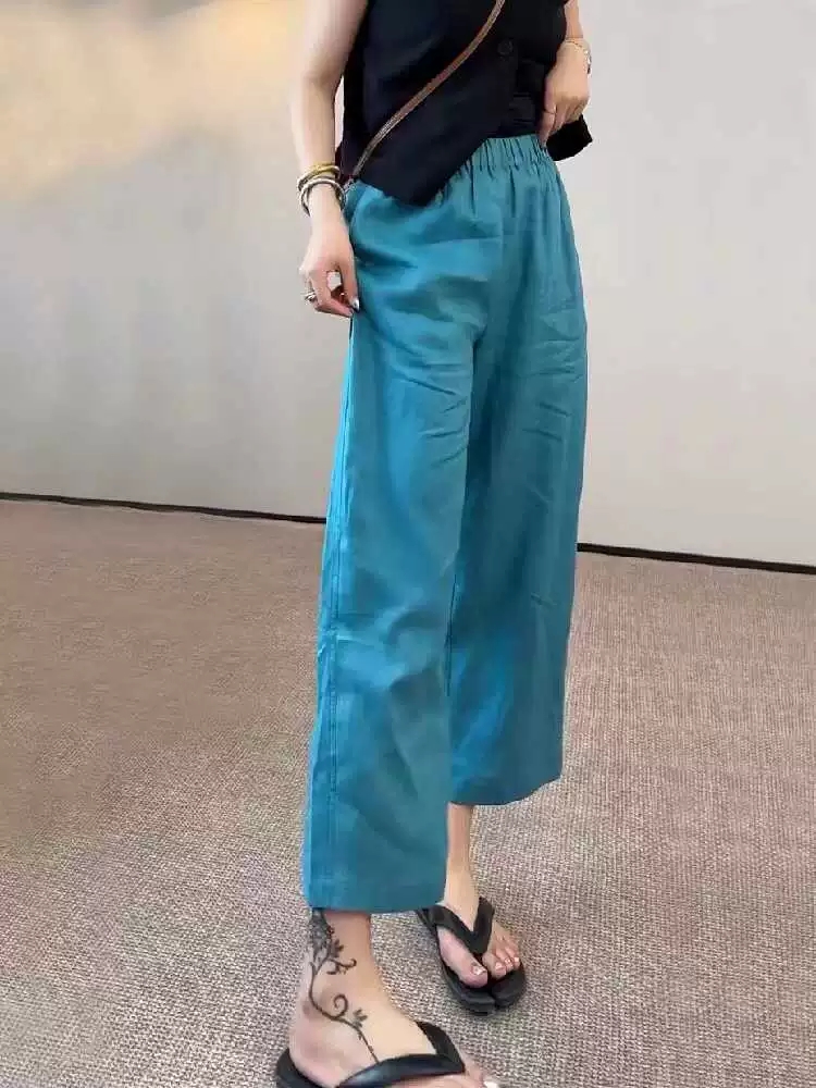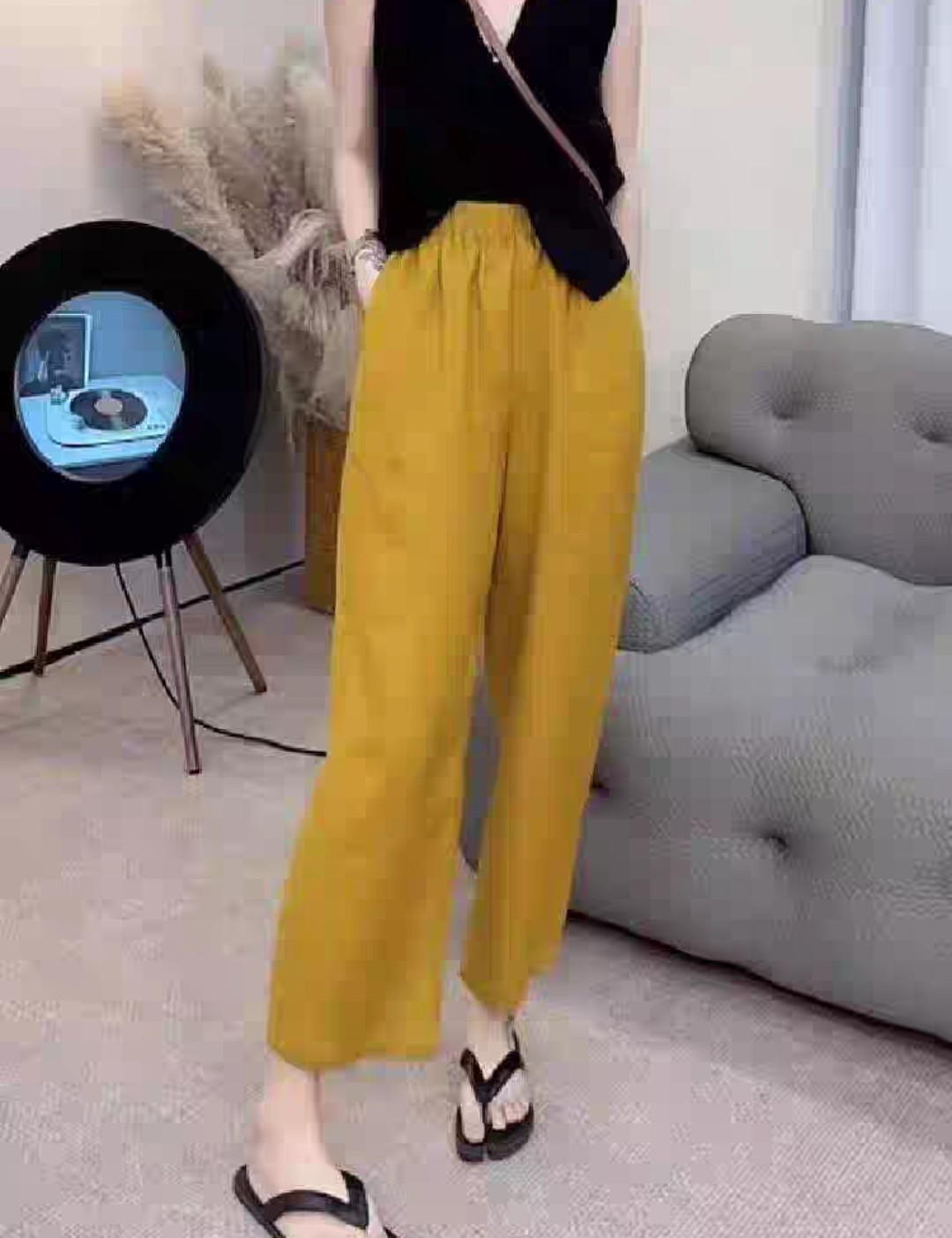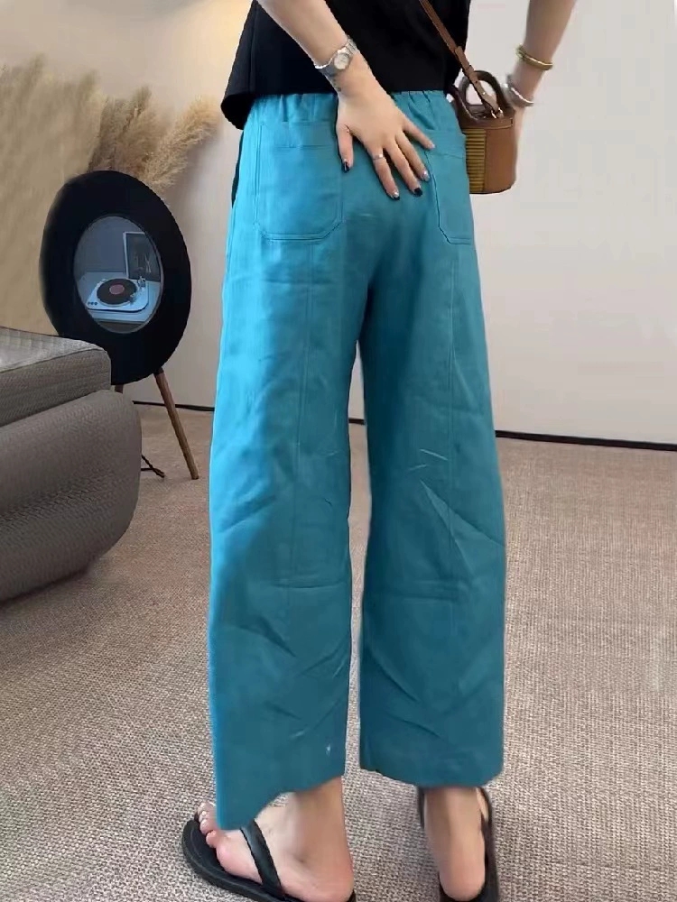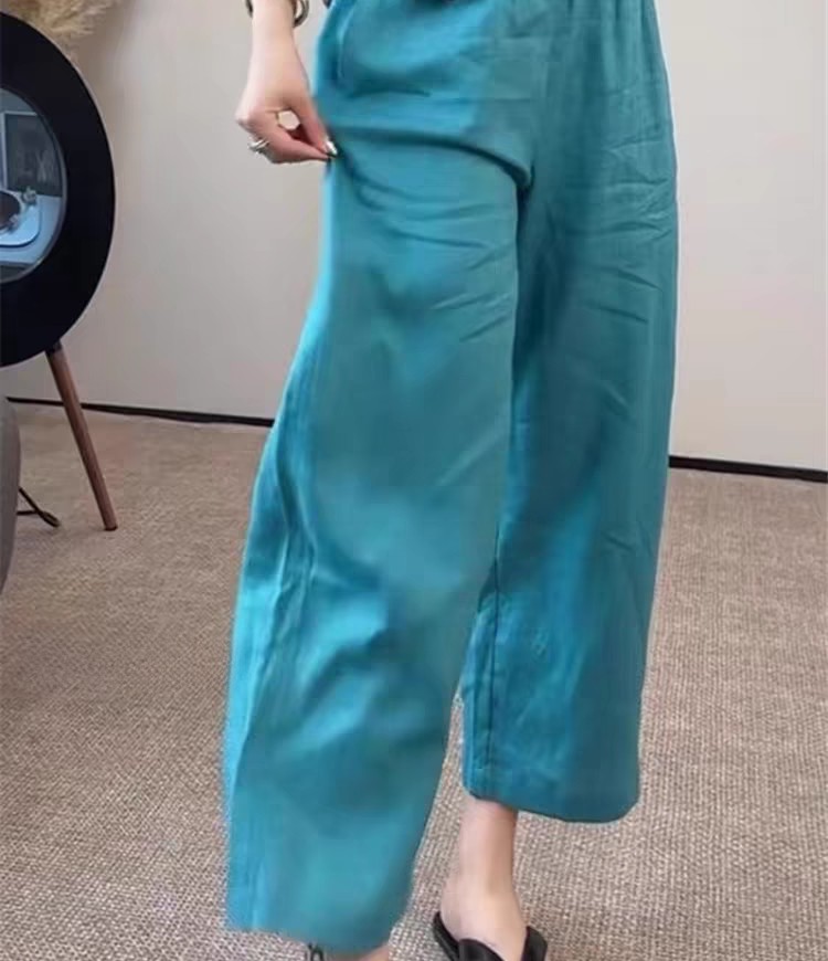 코튼 린넨 9부 와이드 밴딩 팬츠 여성용 여름 간절기 데일리룩 : 더필잡화점