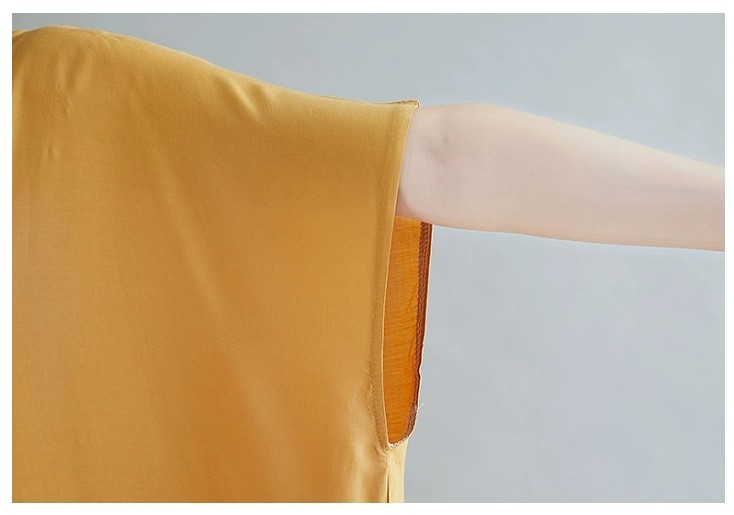 한여름에도 몸에 달라붙지 않는 드레이프감 좋은 소재로 살랑이는 바람결을 그대로 느낄 수 있어요. 피부에 닿는 촉감도 부드러워 하루 종일 입고 있어도 부담 없어요