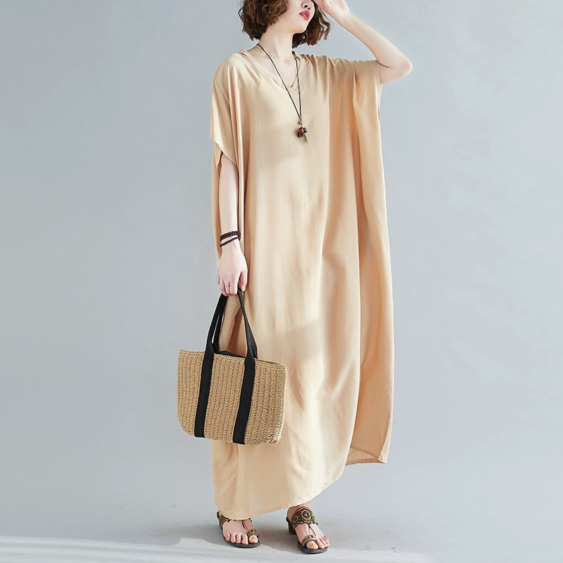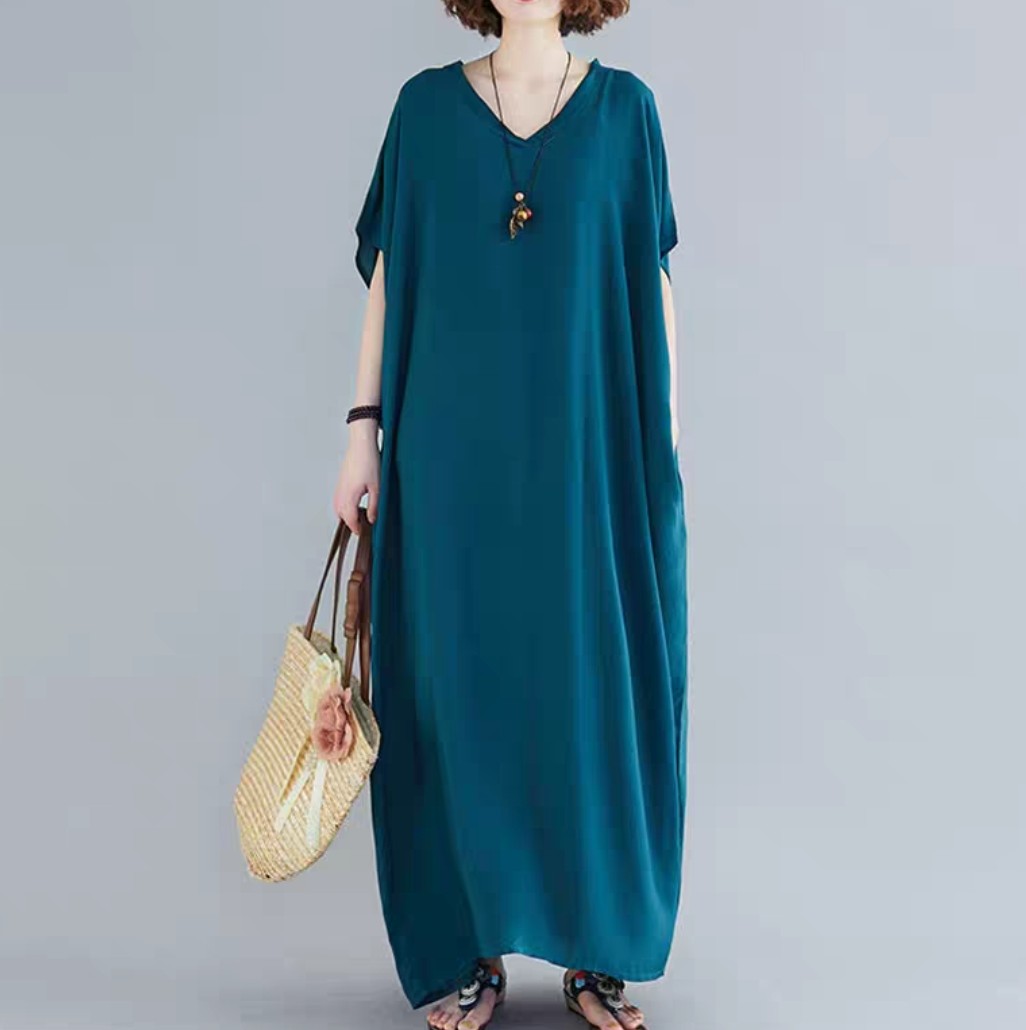여름, 더 가볍고 더 자유롭게. 바쁜 일상 속에서도 나만의 여유를 찾고 싶은 당신을 위해, 한 벌로 완성되는 스타일과 편안함을 동시에 담은 루즈핏 V넥 롱 원피스를 소개해드리려고 합니다
