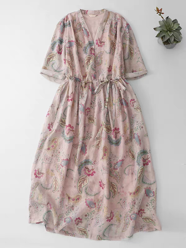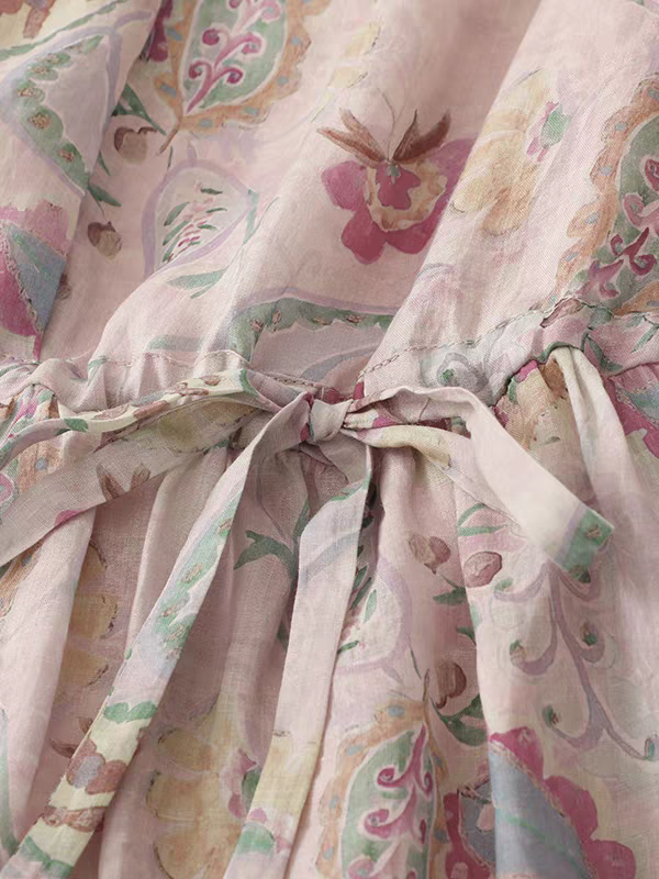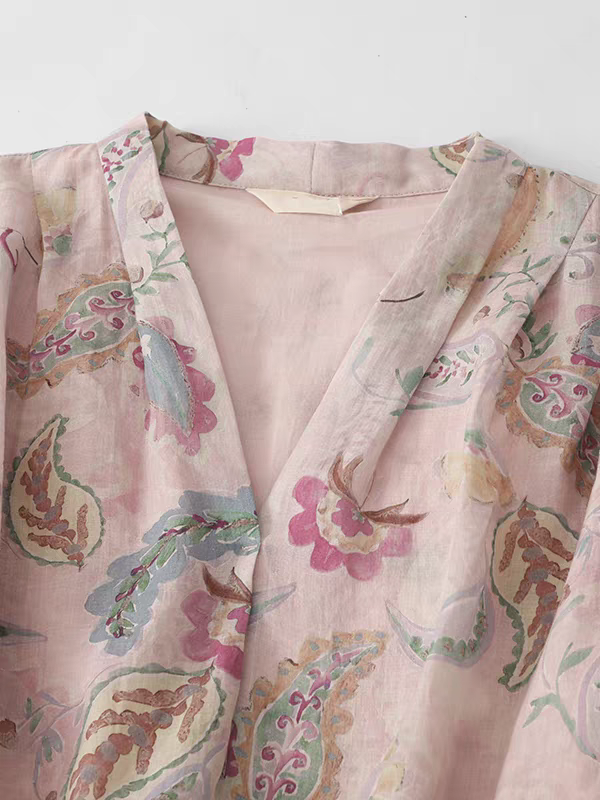 은은한 핑크 바탕에 수채화처럼 번진 플라워 & 리프 패턴이 어우러져, 보기만 해도 시원하고 부드러운 느낌을 줍니다