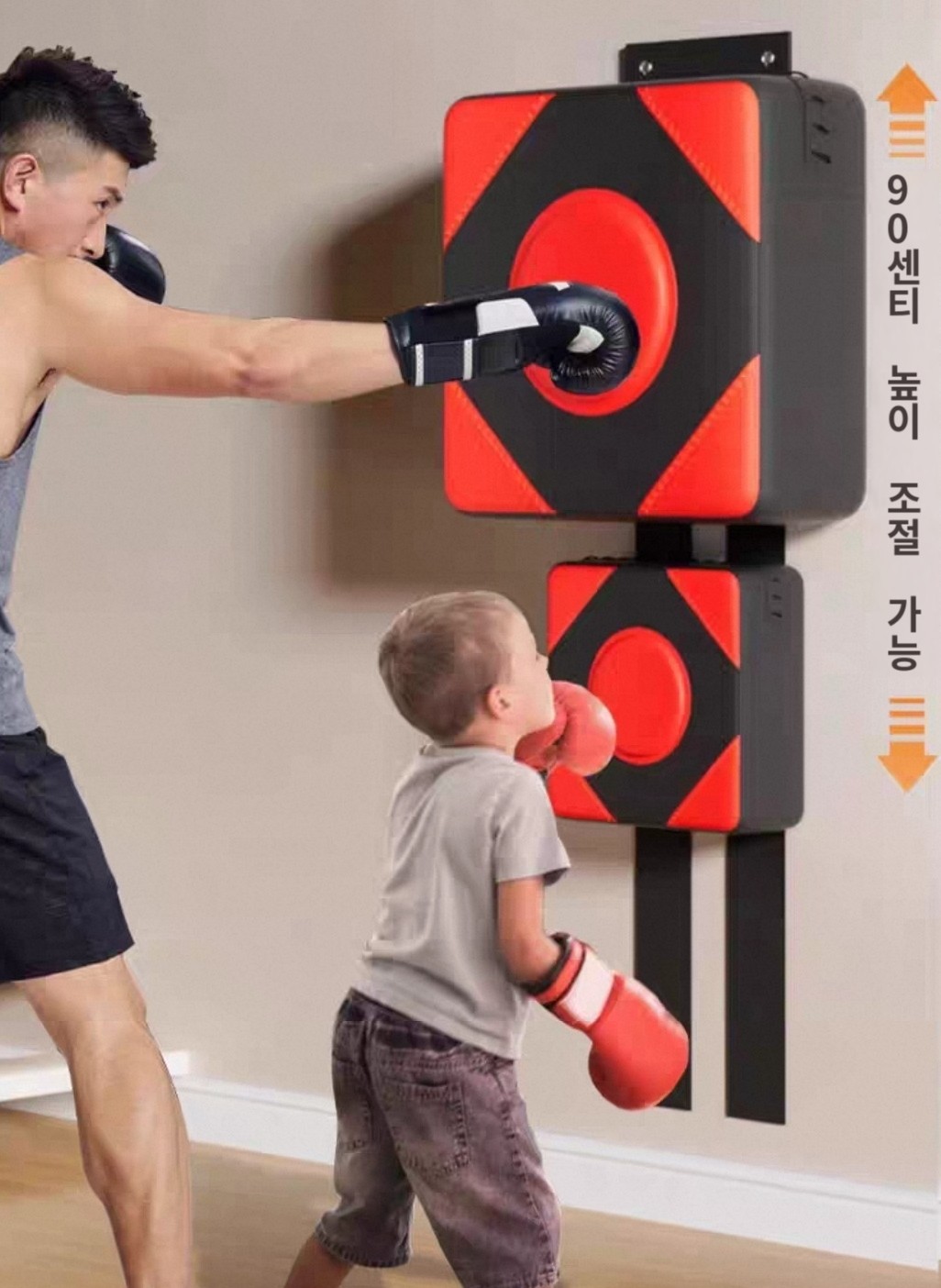 패드를 2단으로 구성하면 최대 90cm 간격 조절 가능. 개인 체형에 맞게 높이를 조절해 누구든지 편안한 자세로 타격 연습이 가능합니다