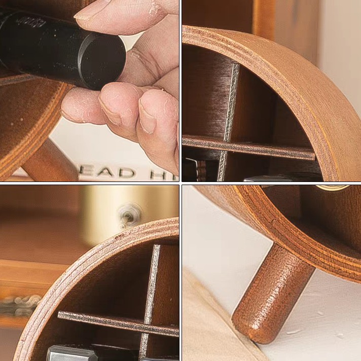 이 정리함의 가장 큰 매력은 자연 그대로의 나무 결을 살린 빈티지한 느낌이에요. 둥글고 부드러운 곡선, 고요한 색감, 그리고 작고 귀여운 다리까지