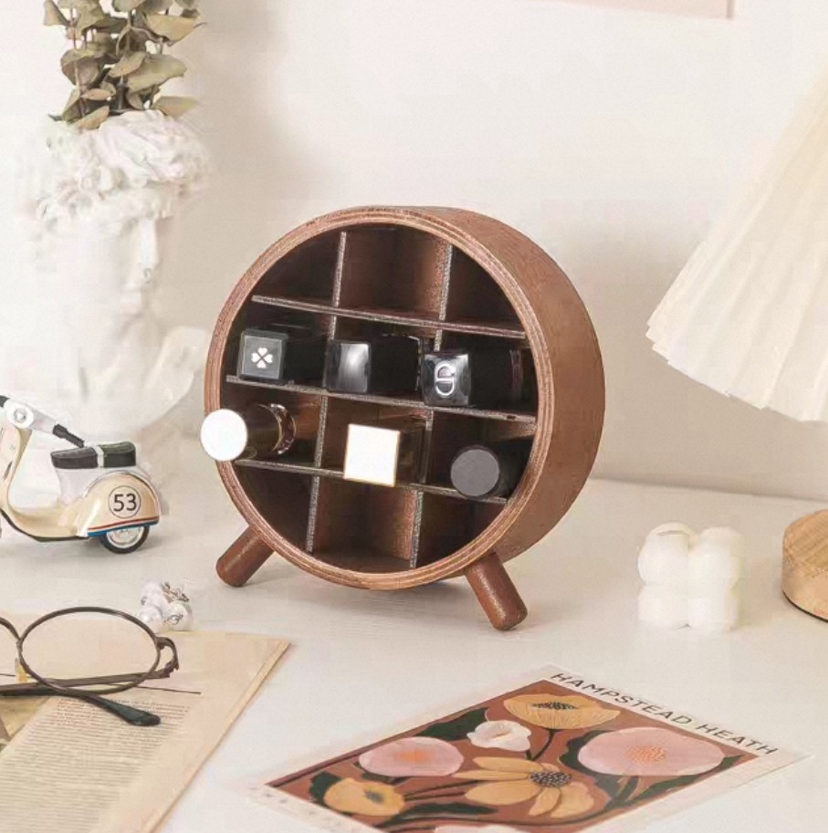 동글동글한 부드러운 곡선이 매력적이에요. 9칸으로 나뉘어 있어 립스틱, 틴트처럼 자잘한 소품을 세워서 정리하기 좋아 보여요. 귀엽고 감성적인 분위기를 좋아하신다면 이쪽이 잘 어울릴 것 같아요