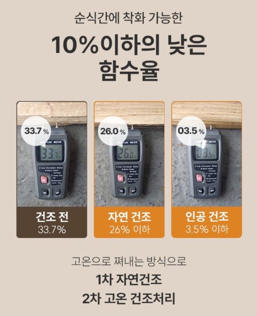 캠핑장에서 연기가 많이 나면 자리를 옮기느라 불편한 경우가 많습니다. 하지만 코멧 참나무 장작은 10% 이하의 낮은 함수율로 제작되어