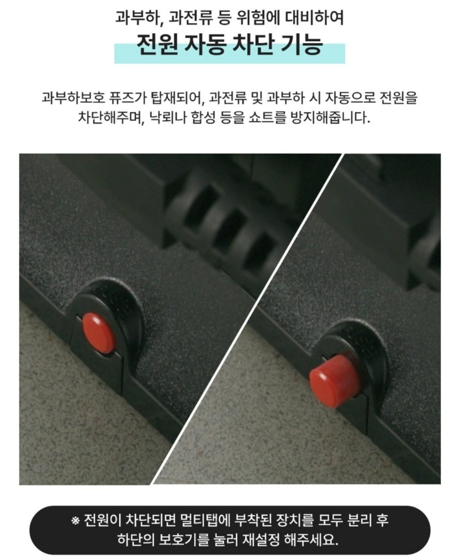 □과부하·과전류 자동 차단 → 최대 2,500W, 화재 위험 차단