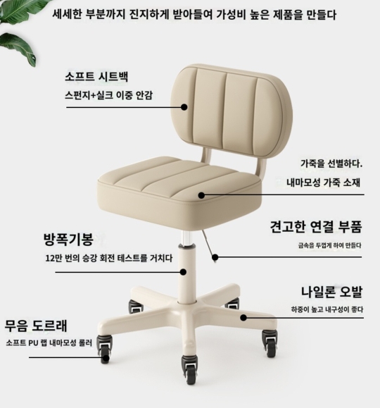 미용의자 등받이 바퀴 보조 속눈썹 네일 시술 진료 의자 : 세상의모든만물